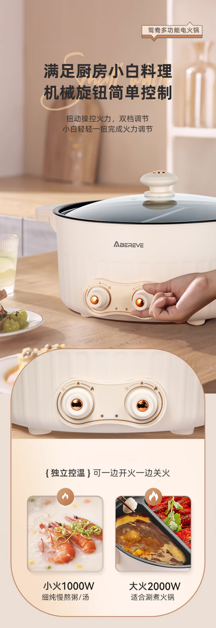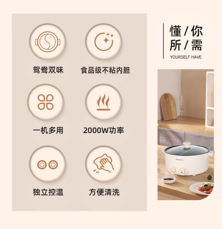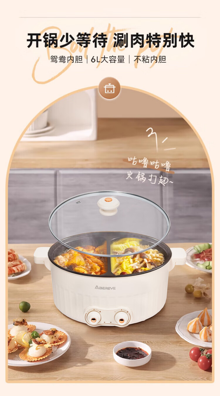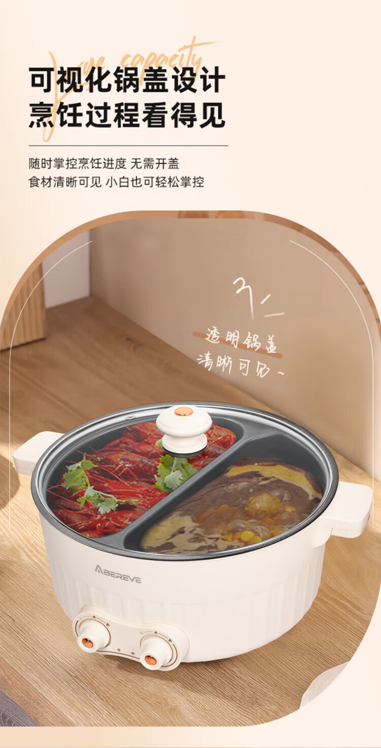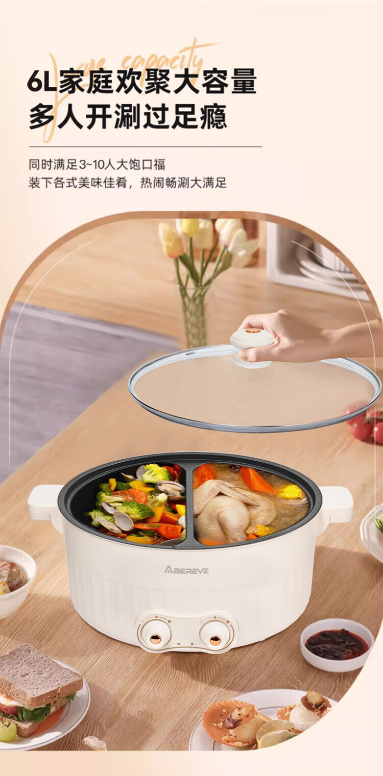 ABEREVE/艾贝丽6升多功能鸳鸯锅ABL-HG671