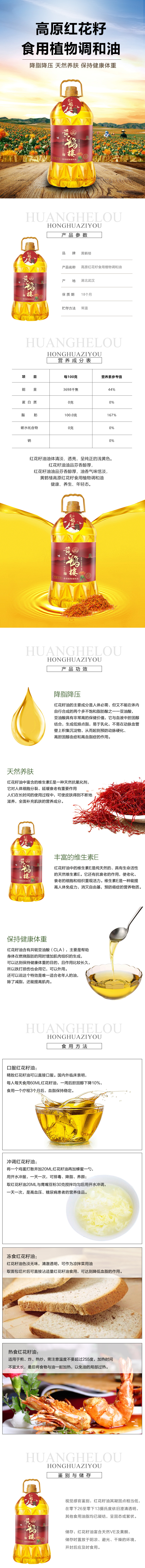 商品名称:黄鹤楼食用植物调和油红花籽油5L