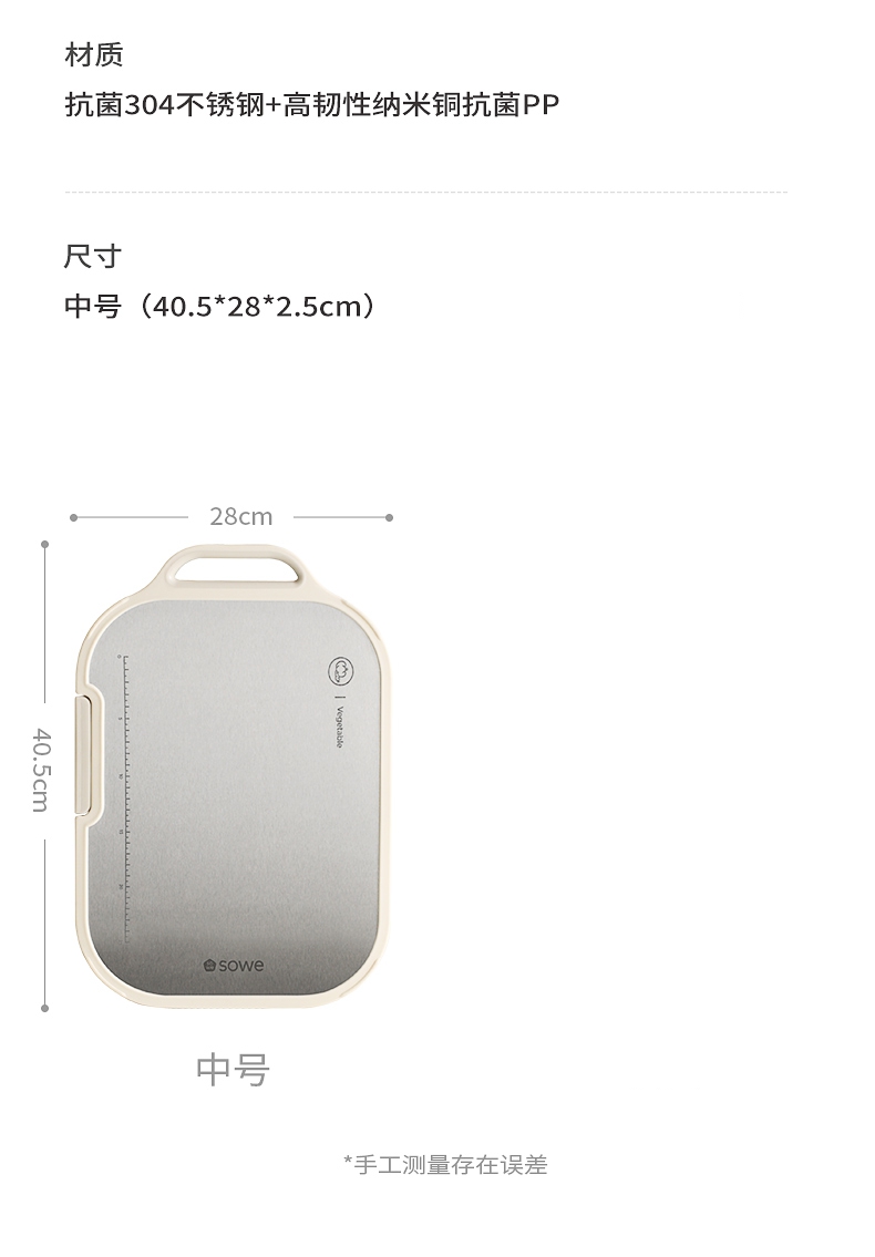 商品名称:SOWE/素味双面抗菌不锈钢菜板-中号