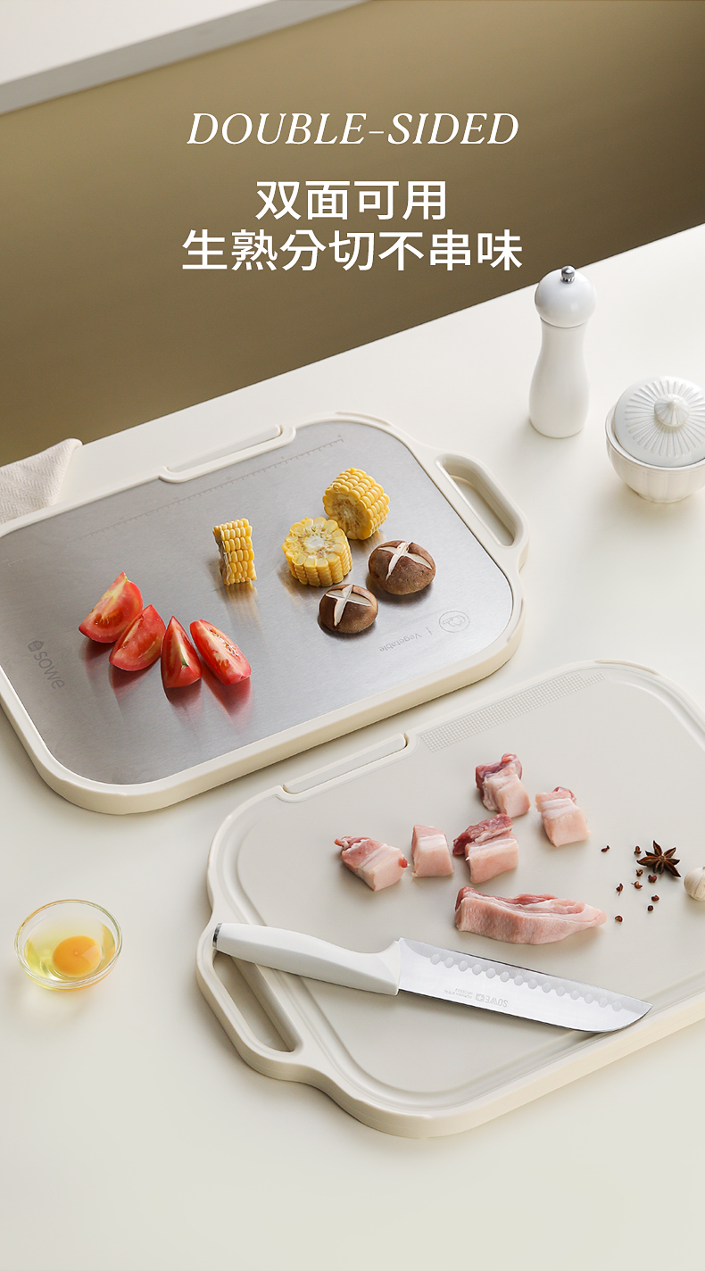 SOWE/素味双面抗菌不锈钢菜板-中号