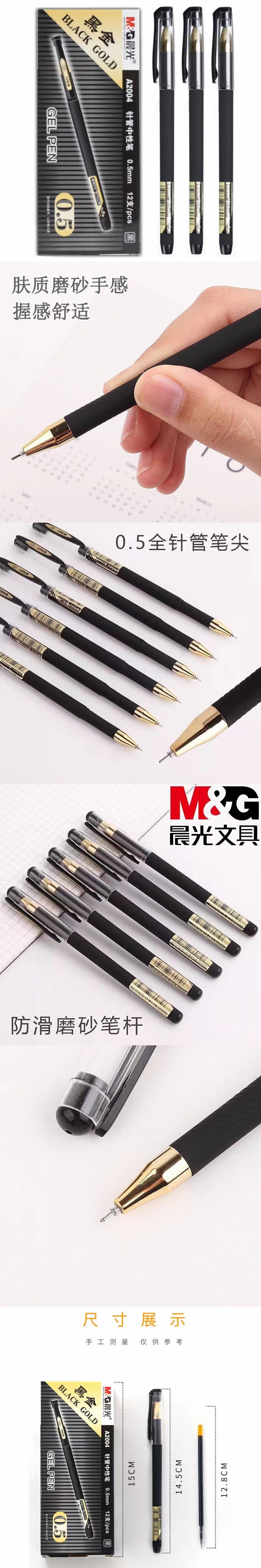 商品名称:晨光0.5mm黑色拔盖黑金中性笔12支*2盒AGPA2004