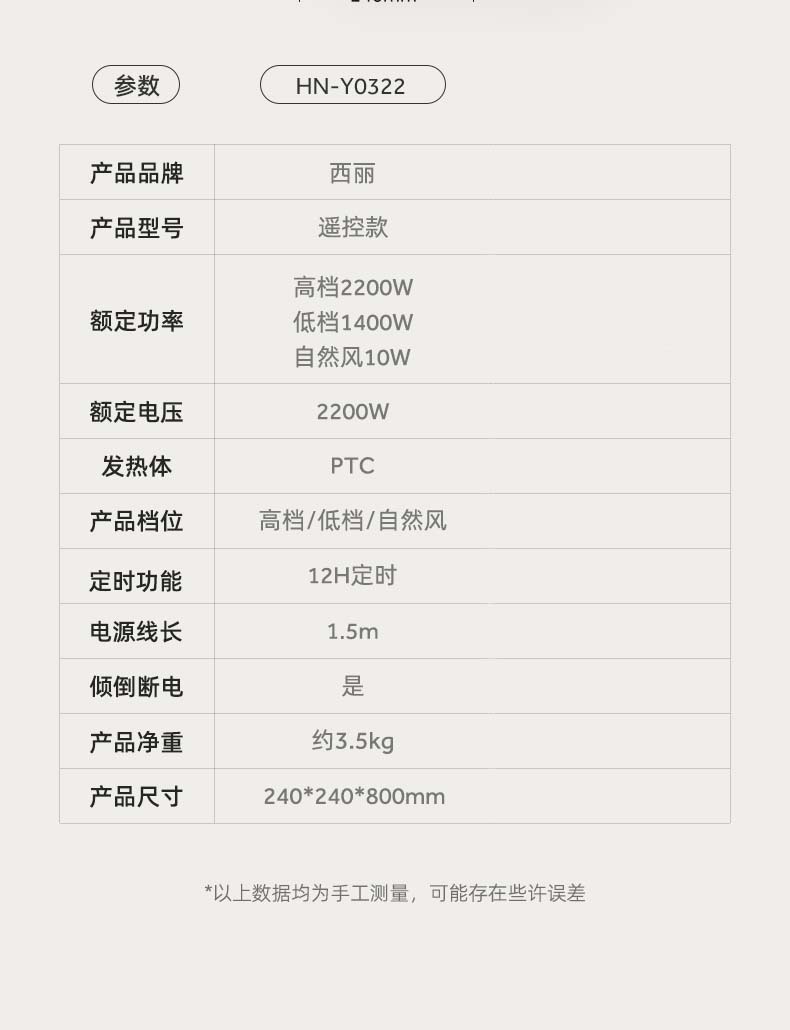 商品名称:Ceerea/西丽石墨烯取暖器-遥控款HN-Y0322