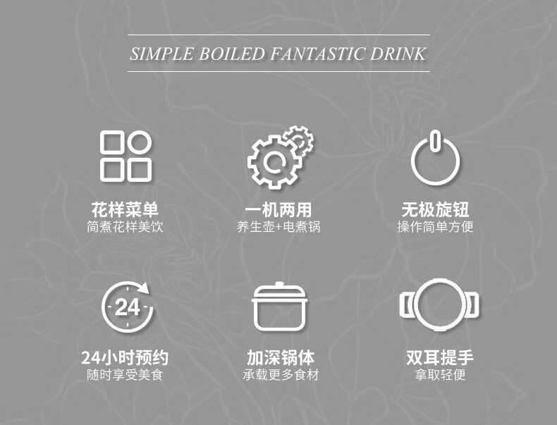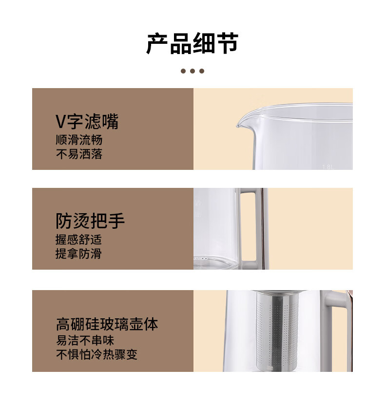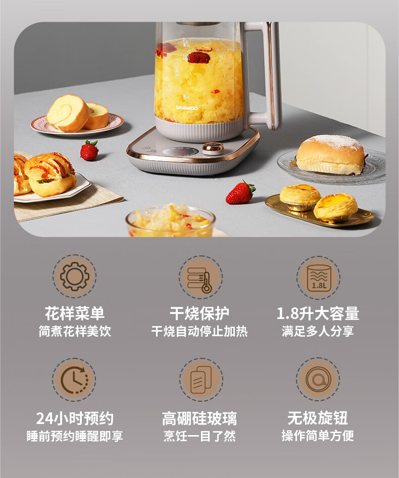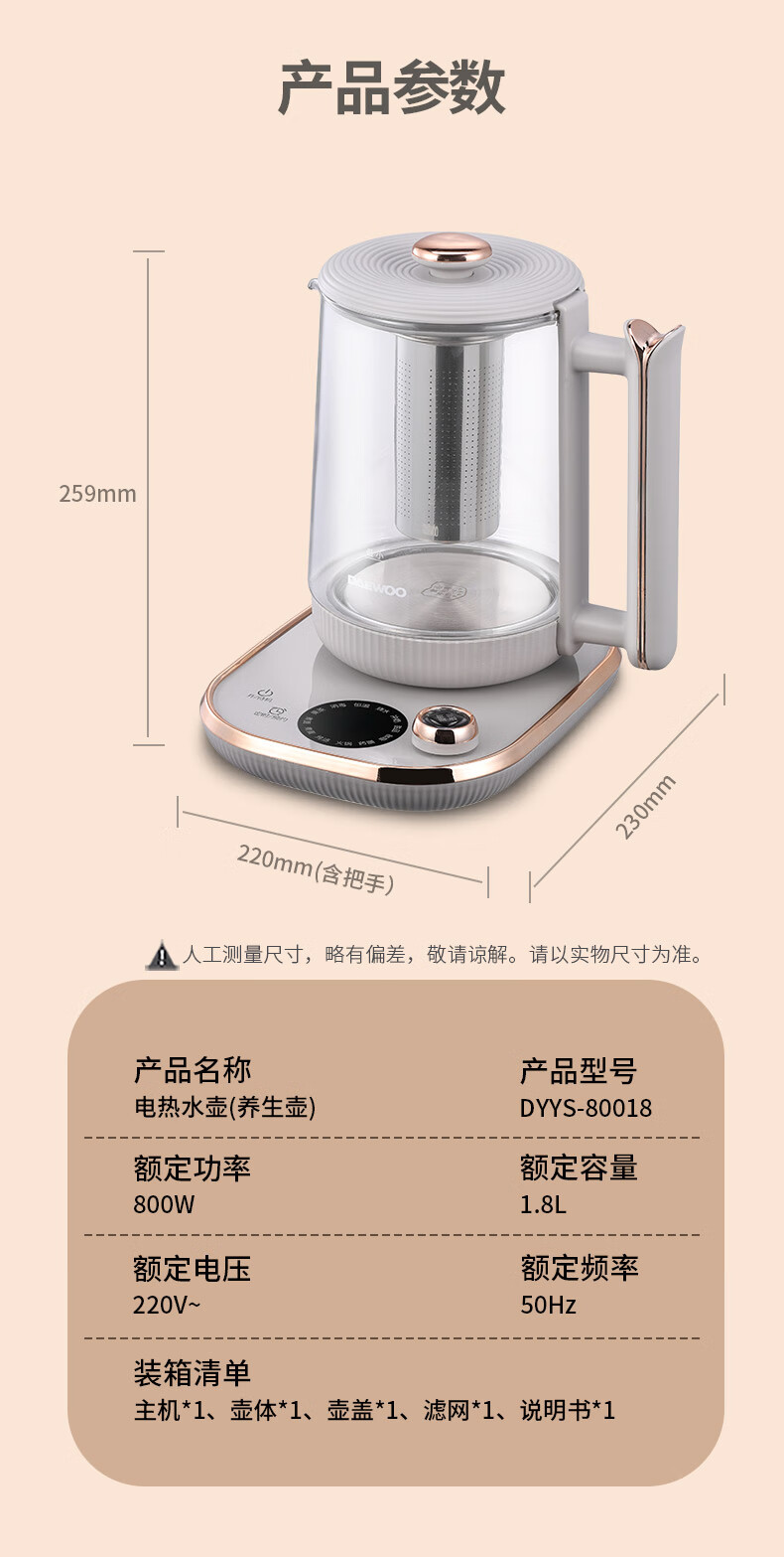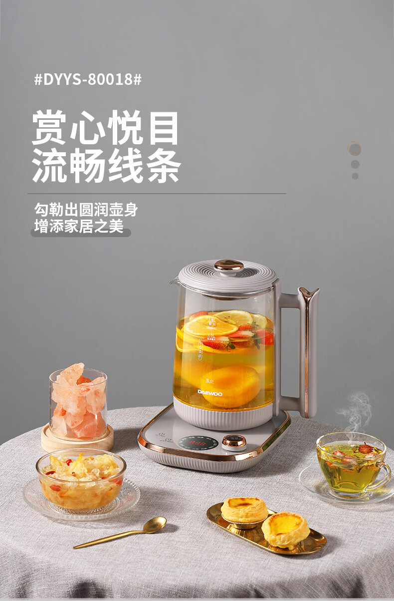 商品名称:DAEWOO/大宇1.8升养生壶-淡雅灰DYYS-80018