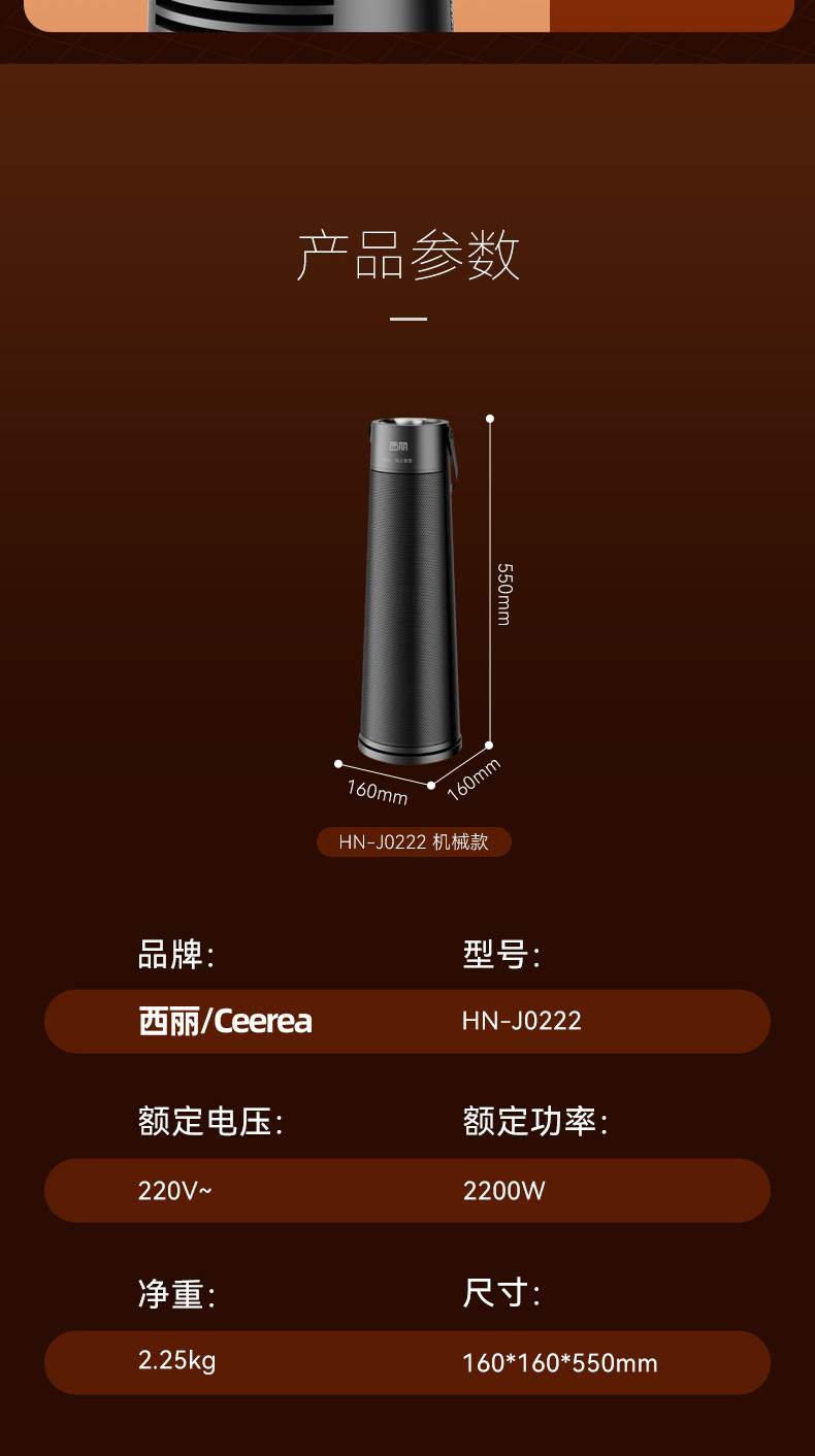 商品名称:Ceerea/西丽立式取暖器-机械款HN-J0222