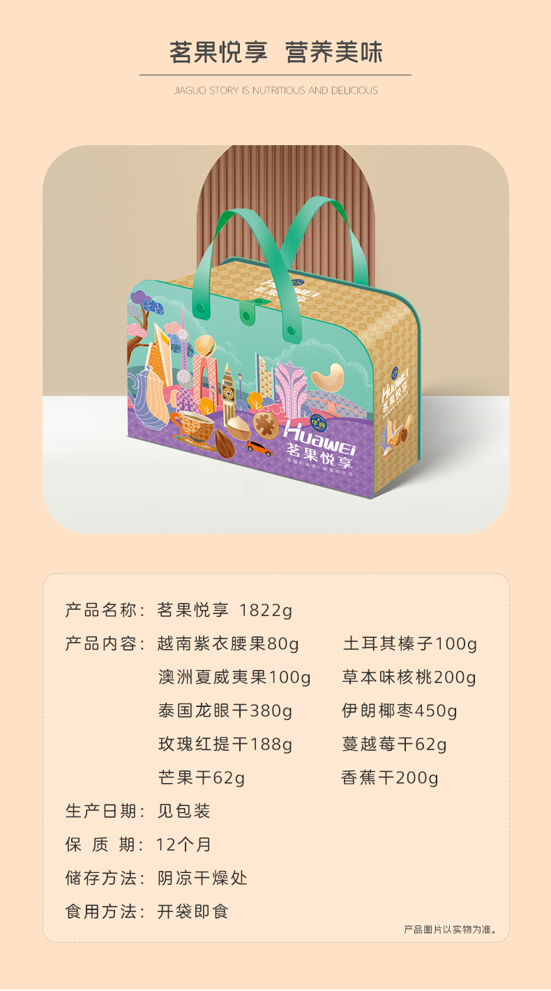 商品名称:HUAWEI FOOD/华巍茗果悦享坚果礼盒1822g