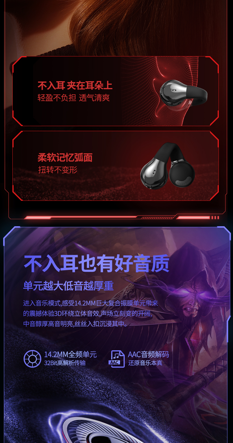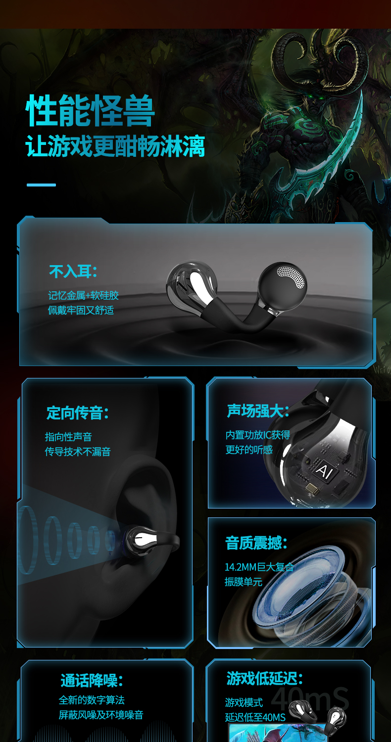 BLIZZARD/暴雪部落联盟夹耳式蓝牙耳机AS-D21
