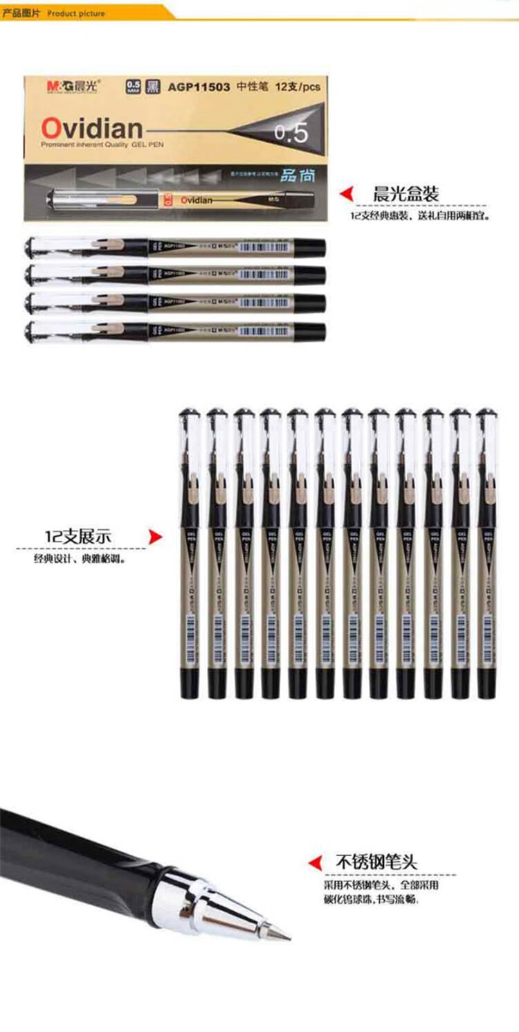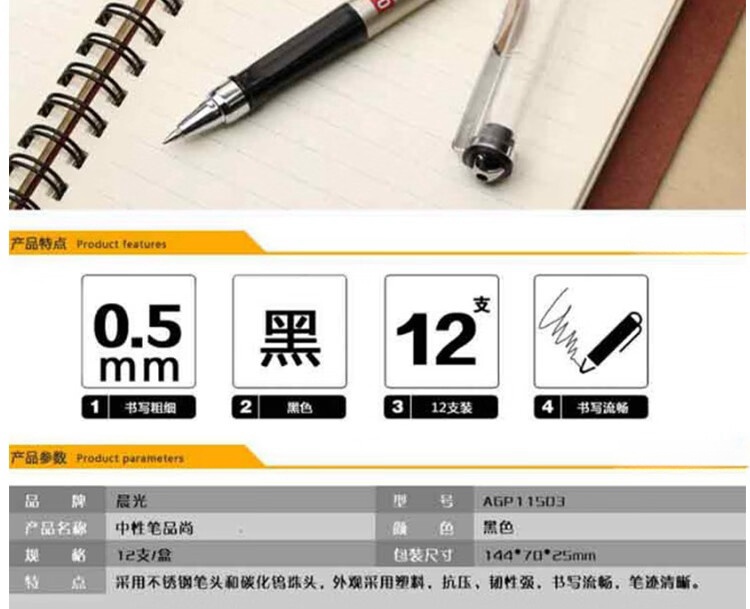 商品名称:晨光0.5mm黑色品尚拔盖中性笔12支AGP11503