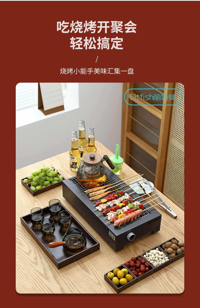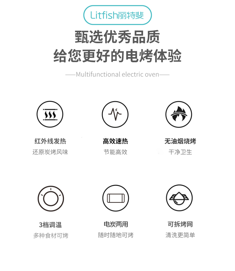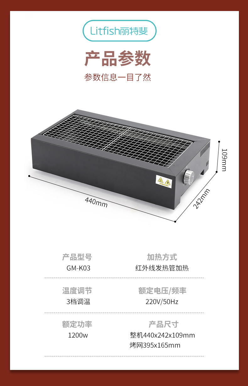 商品名称:Litfish/丽特斐户外电炭一体烧烤炉GM-K03