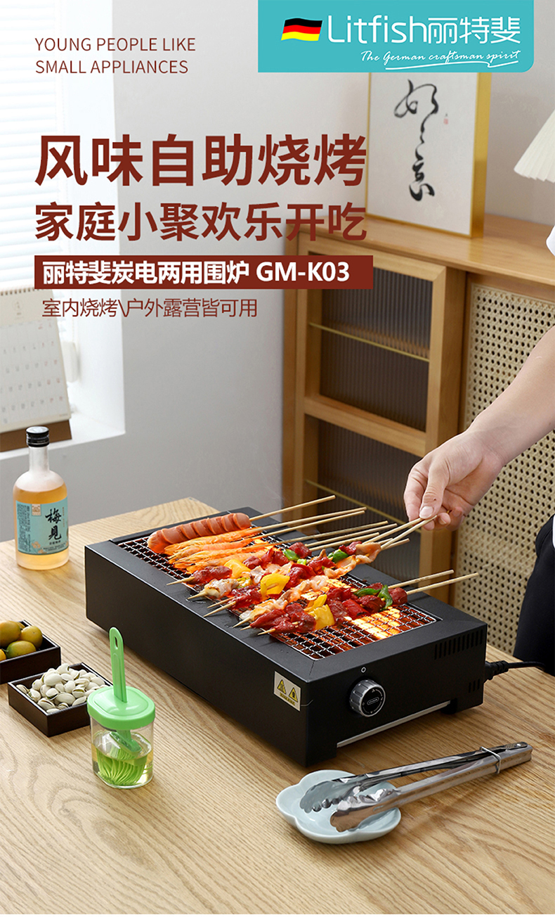 Litfish/丽特斐户外电炭一体烧烤炉GM-K03