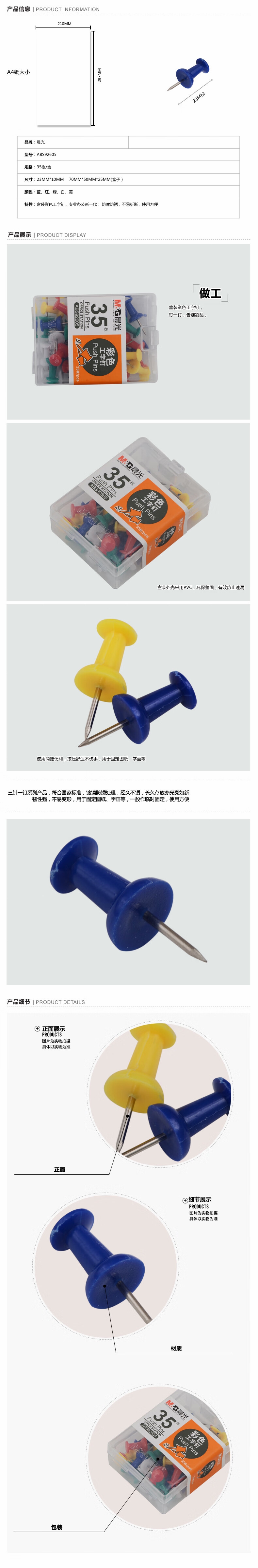 商品名称:晨光彩色工字钉大头针35枚*10盒ABS92605