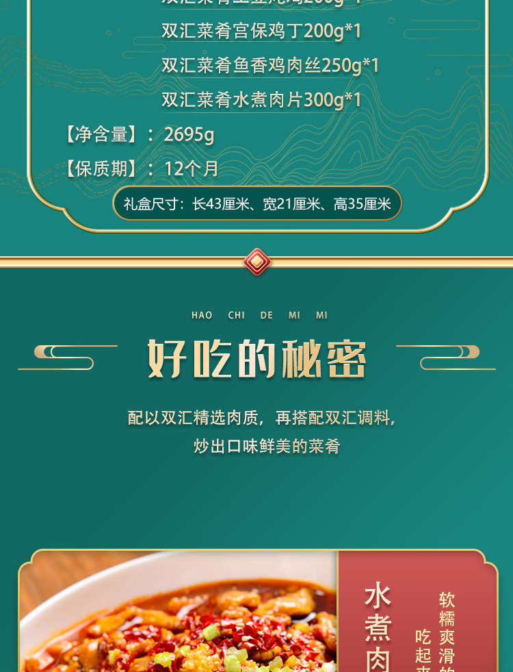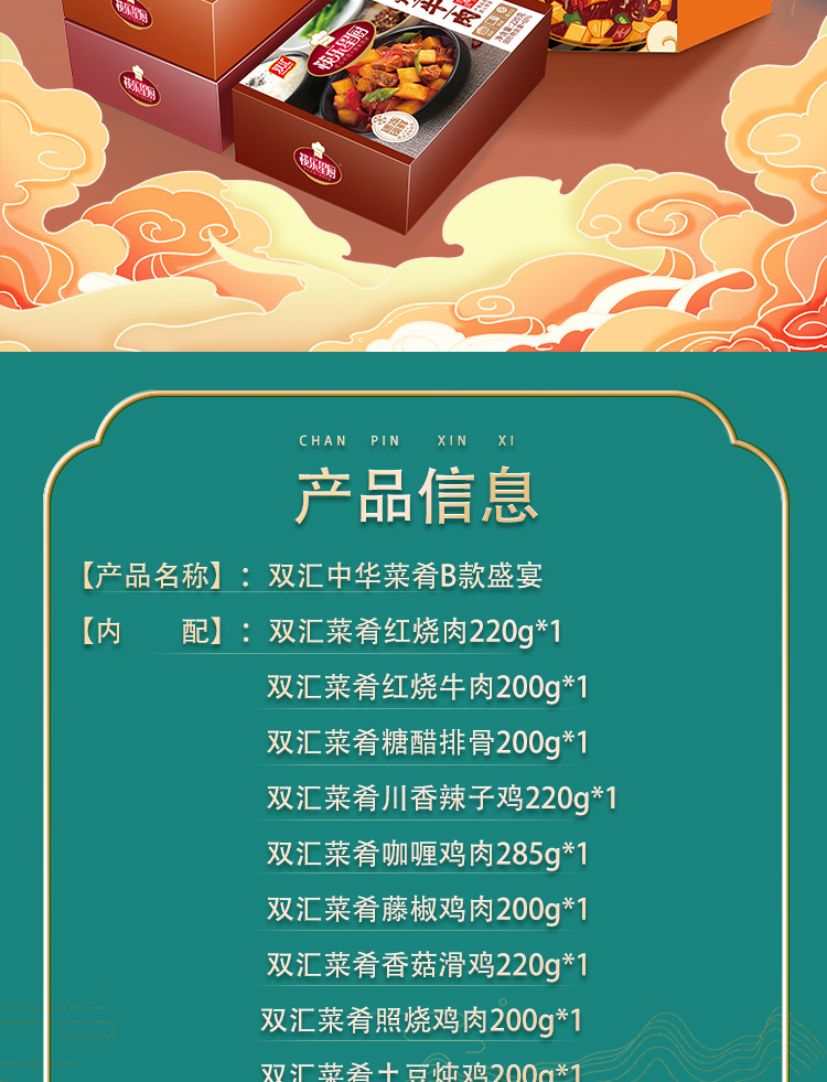 商品名称:【顺丰配送】双汇中华菜肴盛宴预制菜礼盒B款2695g