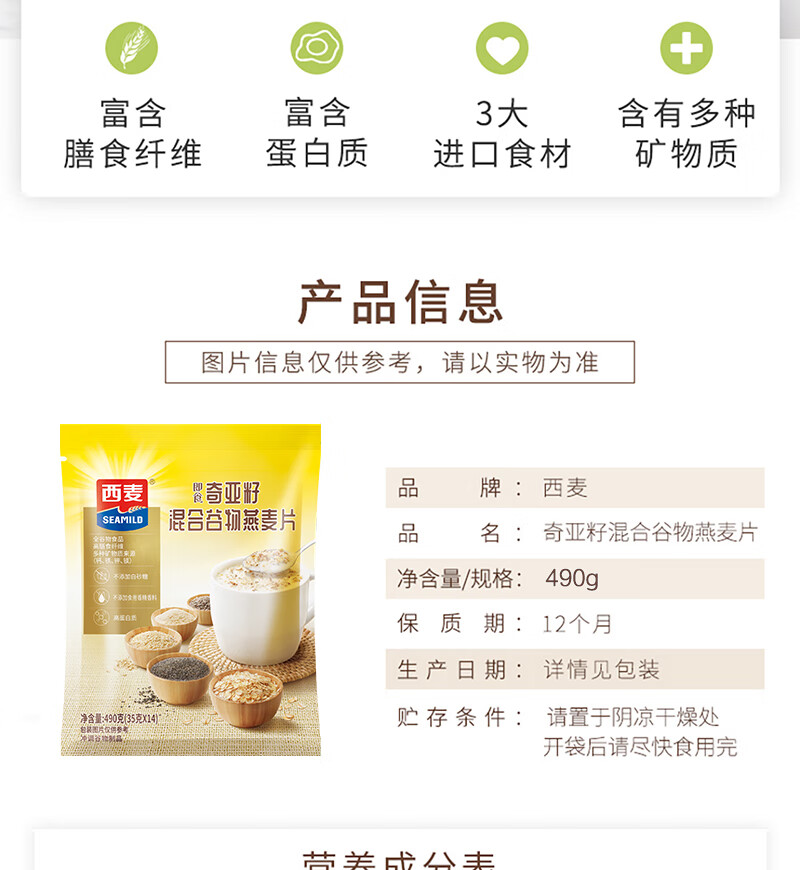 商品名称:SEAMILD/西麦奇亚籽混合谷物燕麦片490g