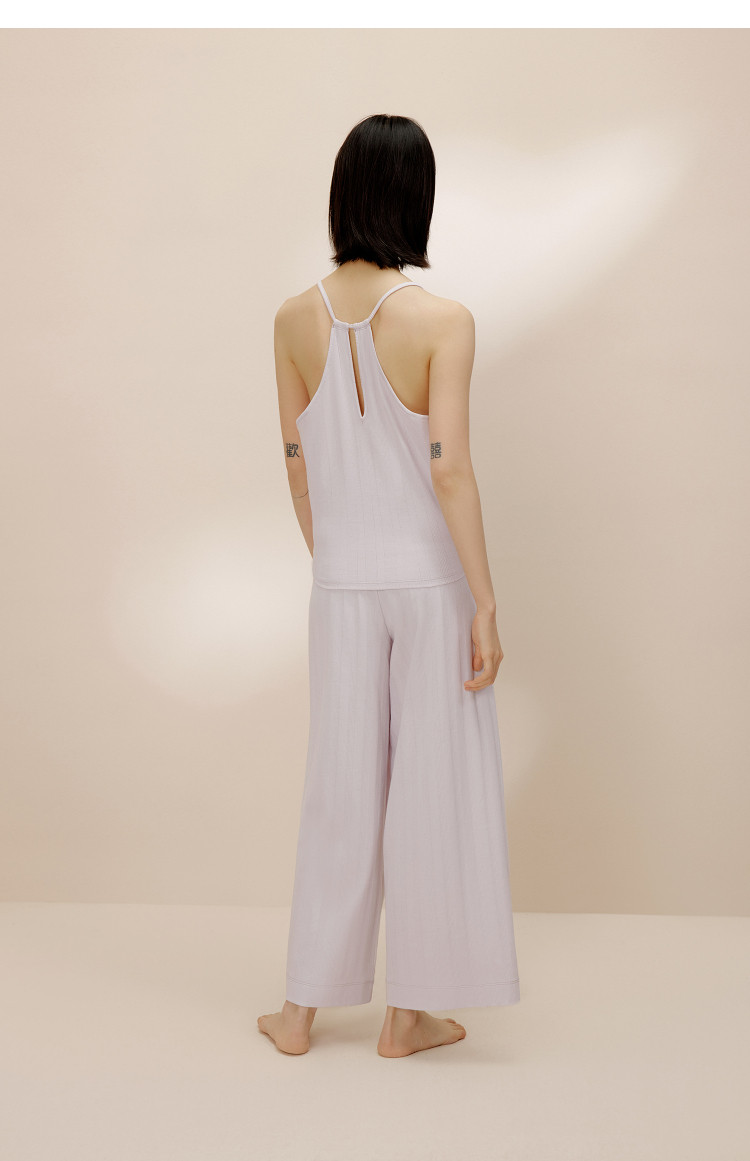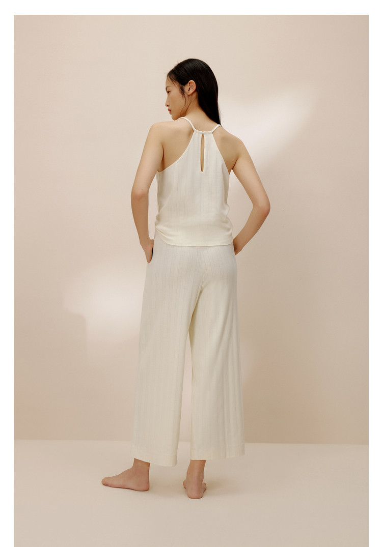 内外少女长绒棉挑孔吊带连体裤家居服镂空条纹 160714