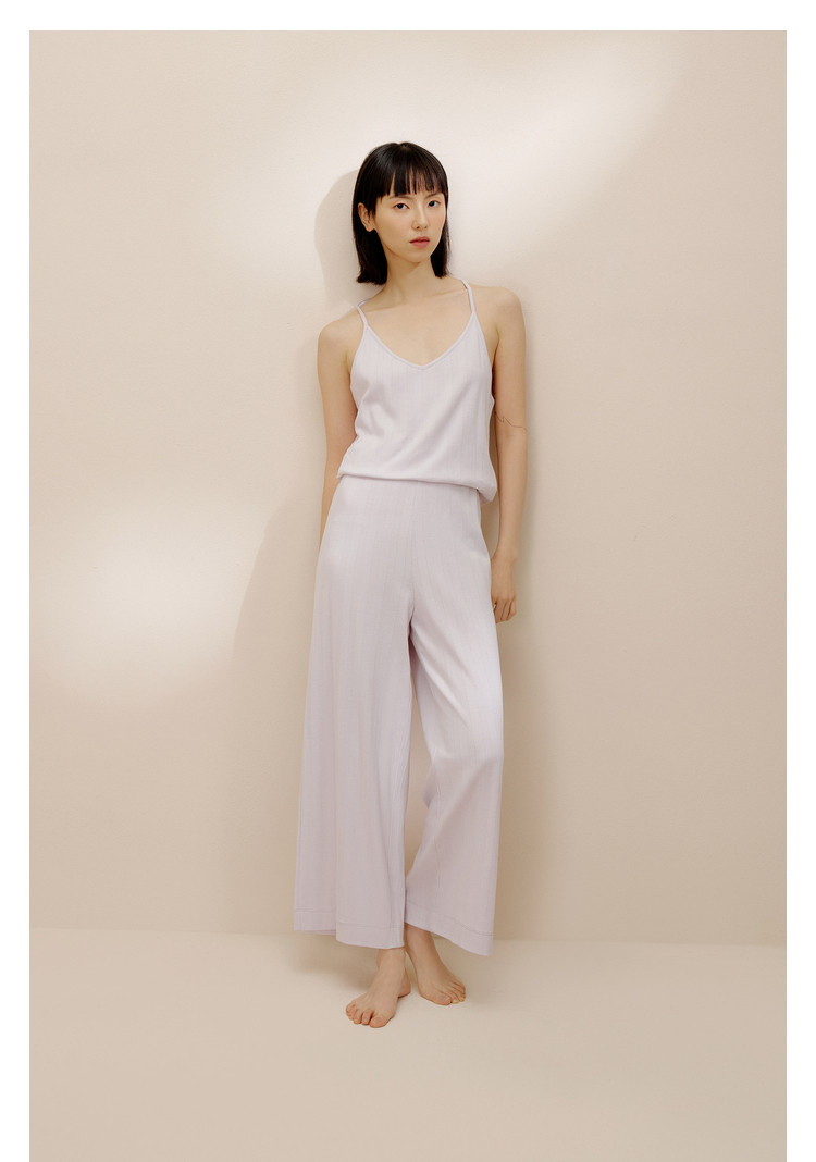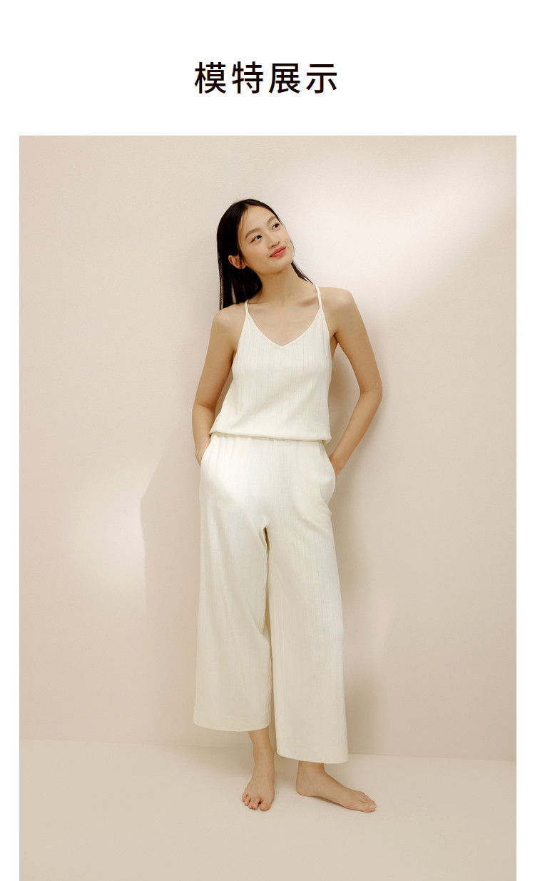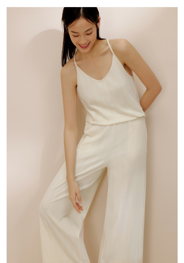 商品名称:内外少女长绒棉挑孔吊带连体裤家居服镂空条纹 160714