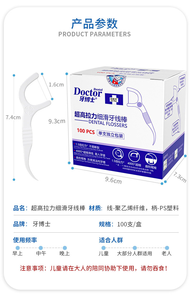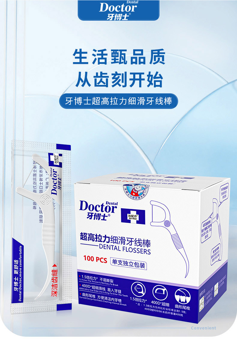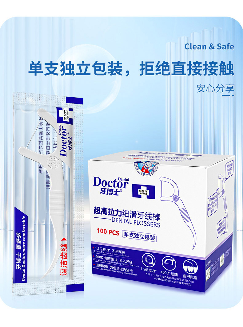 商品名称:Doctor/牙博士超高拉力细滑牙线棒100支