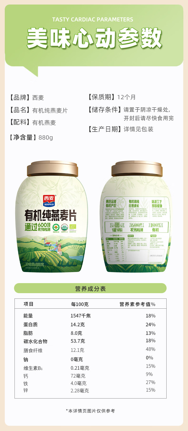 商品名称:SEAMILD/西麦有机纯燕麦片880g