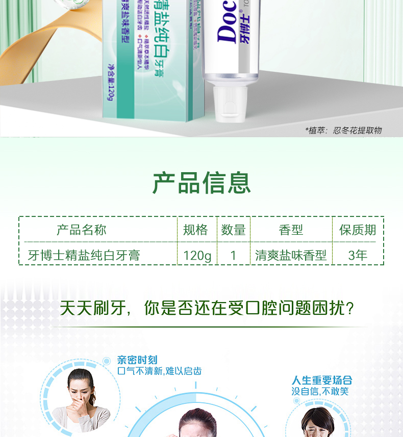 商品名称:Doctor/牙博士精盐纯白牙膏120g