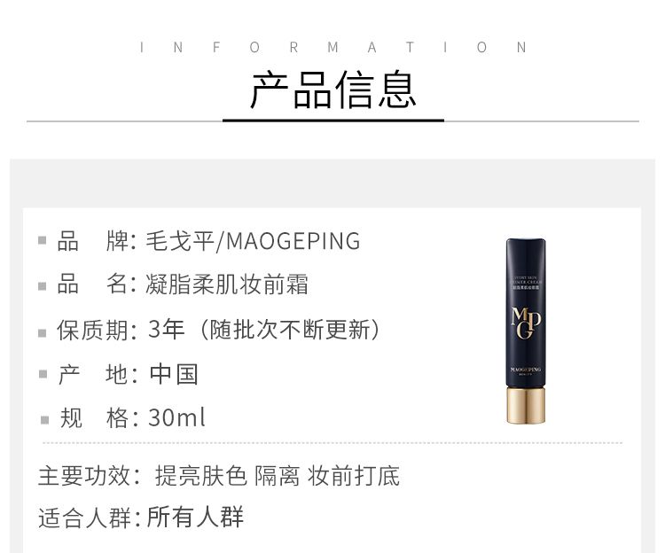 商品名称:Mgpin/毛戈平 凝脂柔肌妆前霜皮肤衣妆前乳素颜霜 30ml