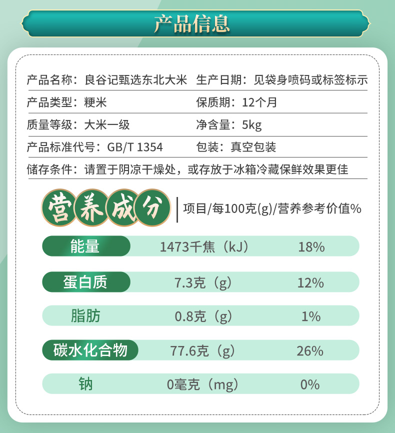 商品名称:太粮良谷纪臻选东北大米5kg