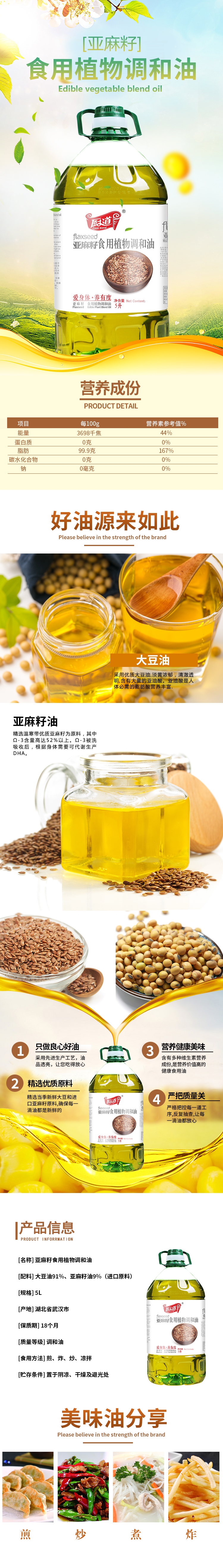 商品名称:Cook moral/厨道亚麻籽食用植物调和油5L