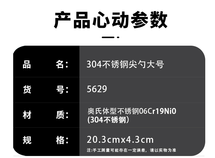 商品名称:象太郎304不锈钢尖勺-大号(5629)*3把
