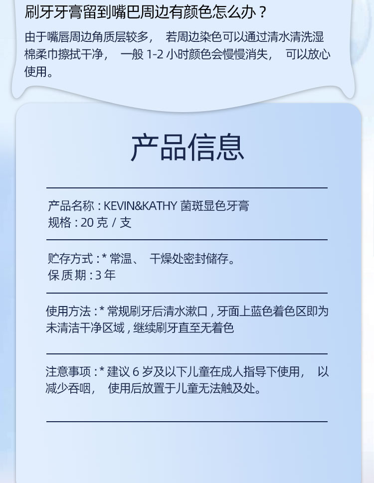 商品名称:Kevin&Kathy/凯文凯茜菌斑显色牙膏