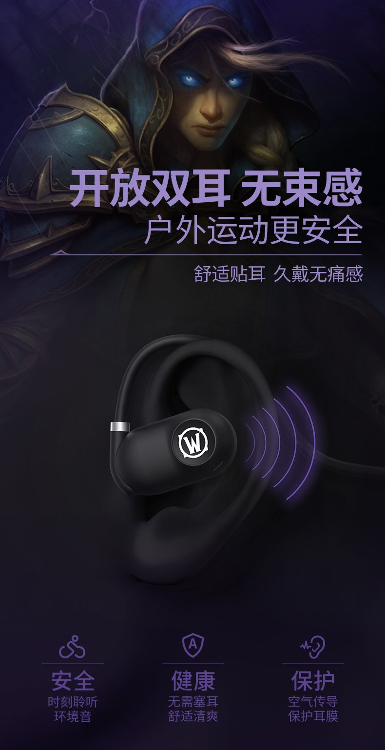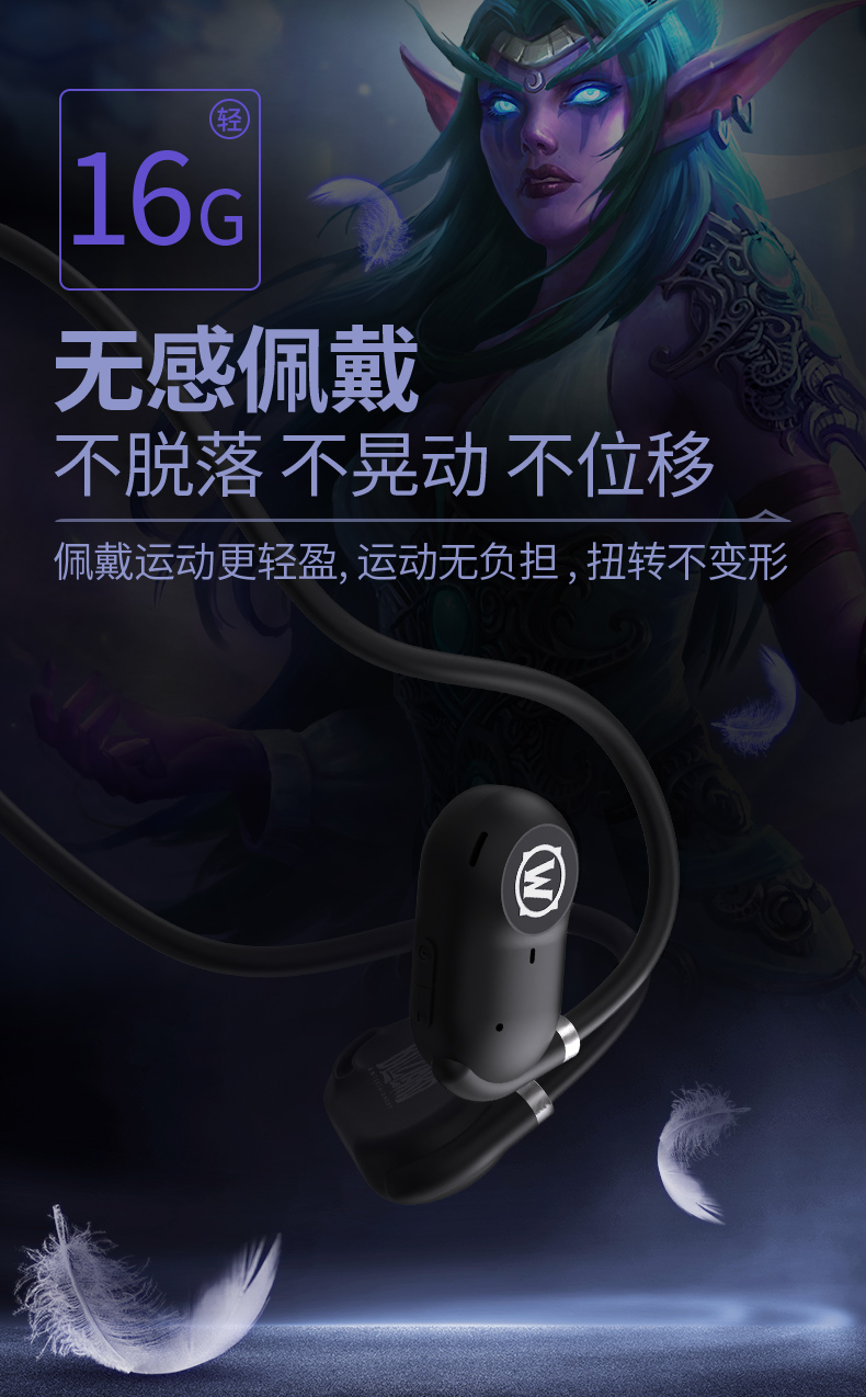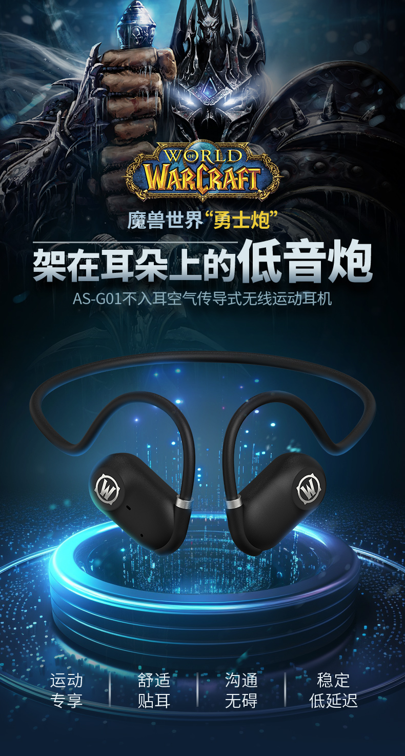 商品名称:BLIZZARD/暴雪魔兽世界空气传导蓝牙耳机-黑色AS-G01