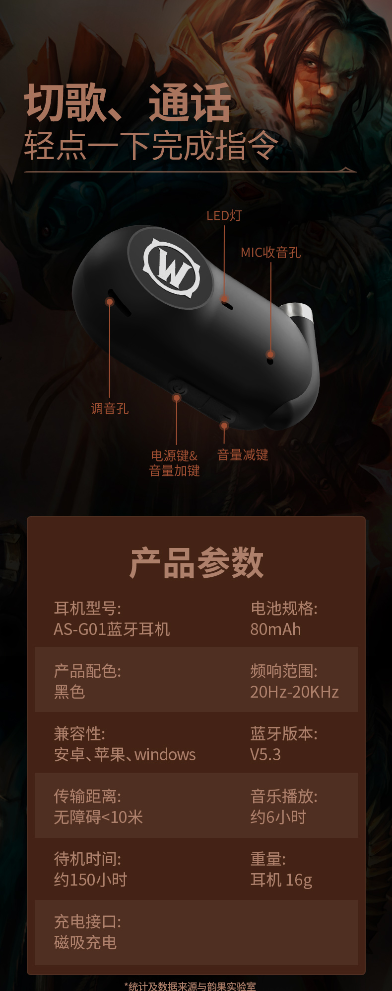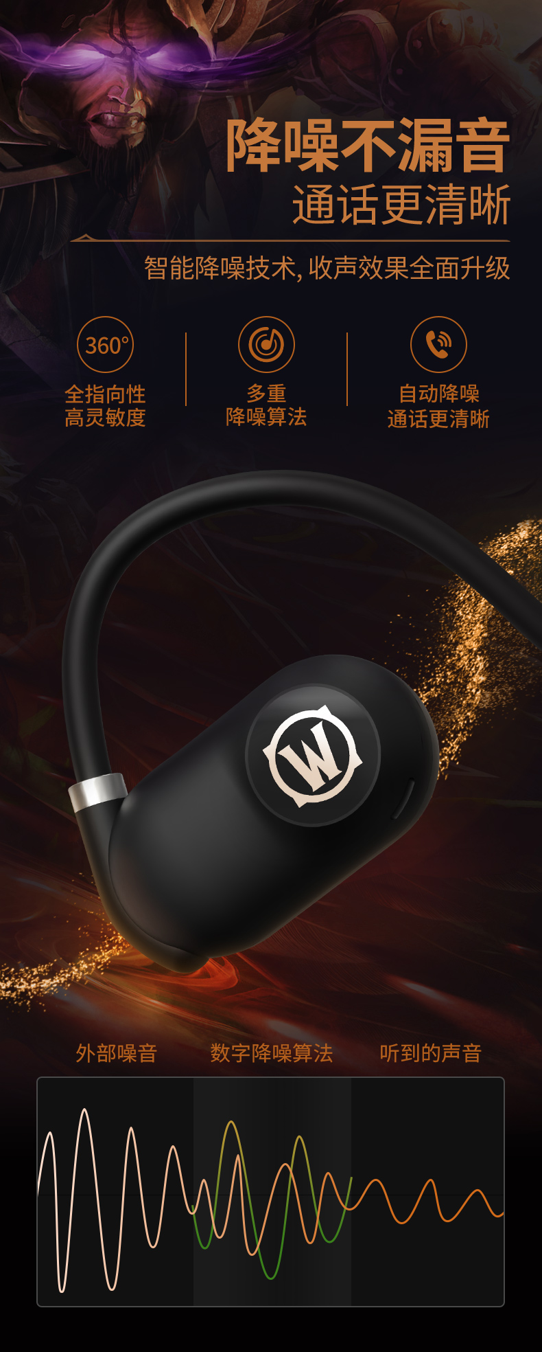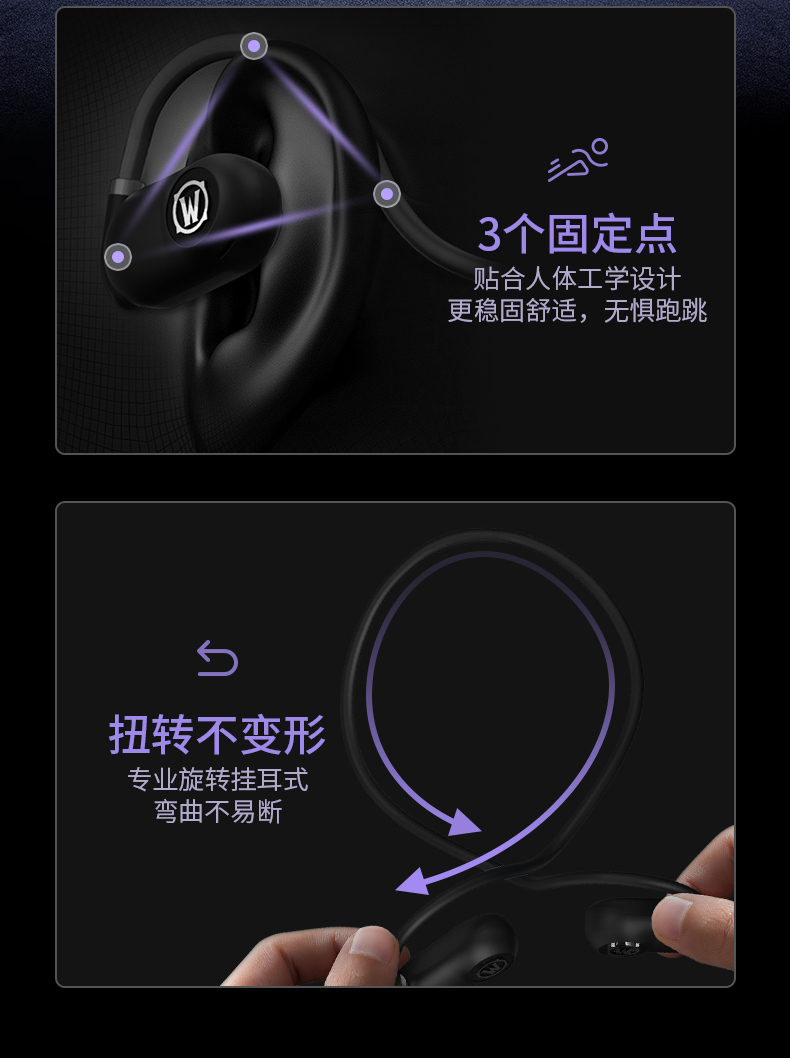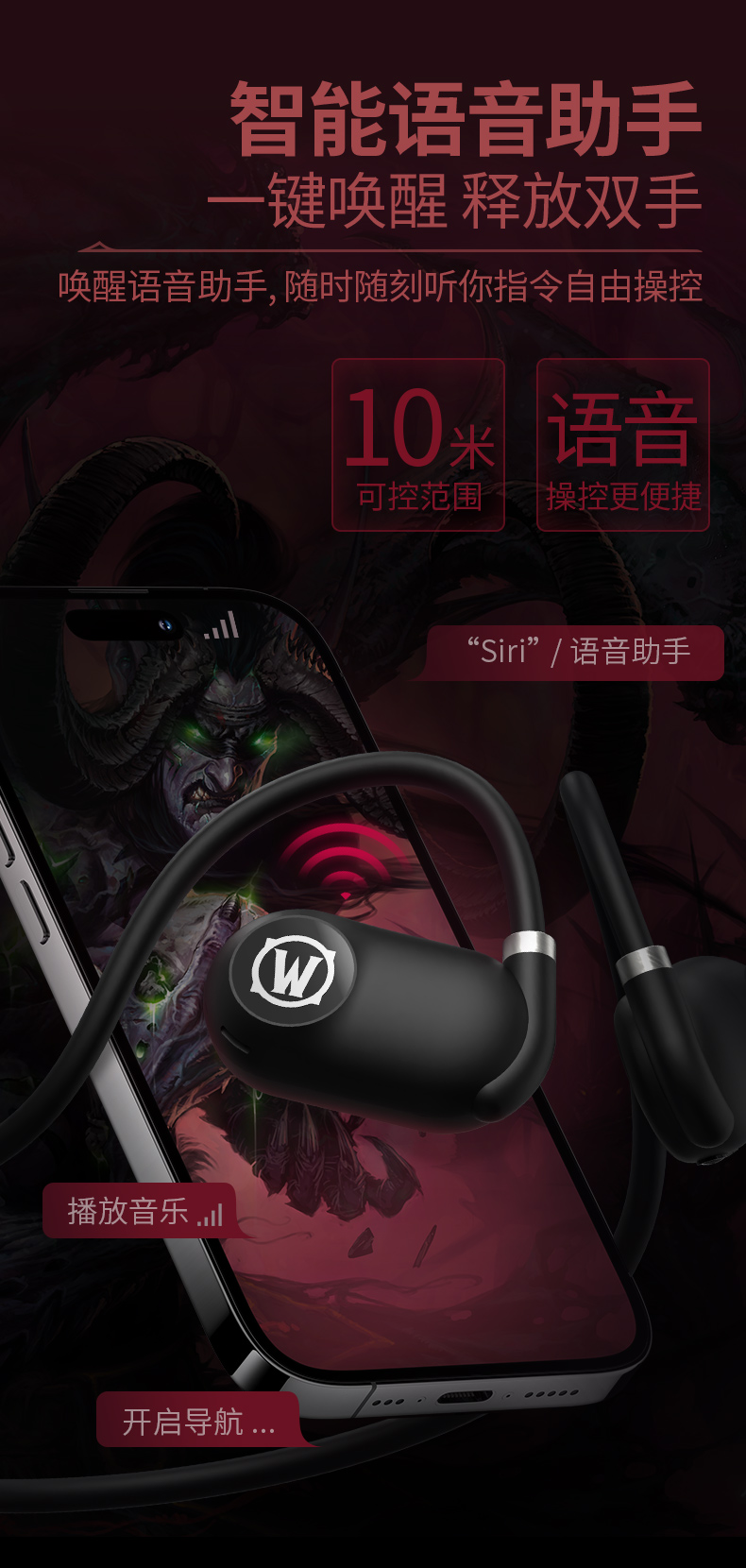 商品名称:BLIZZARD/暴雪魔兽世界空气传导蓝牙耳机-黑色AS-G01