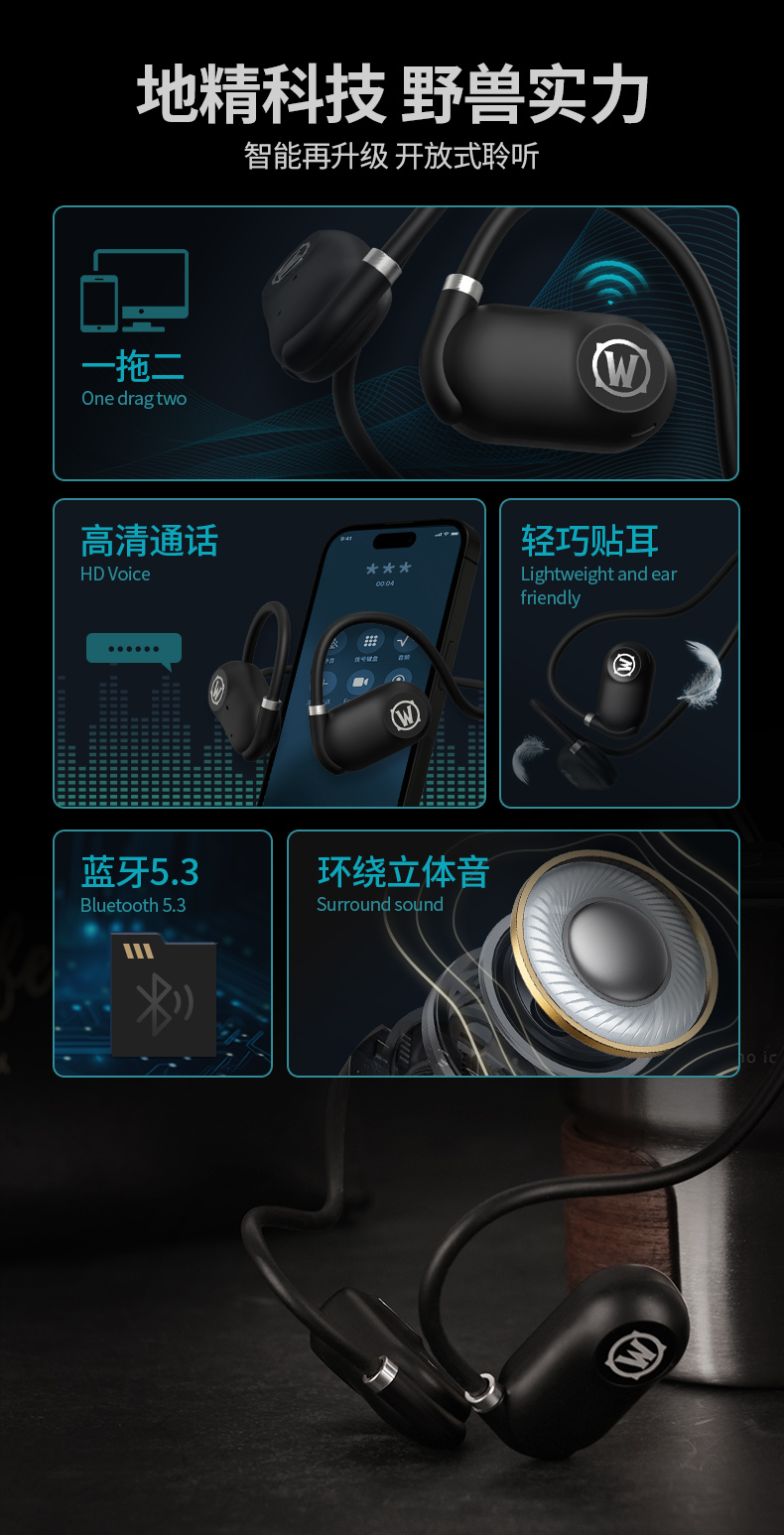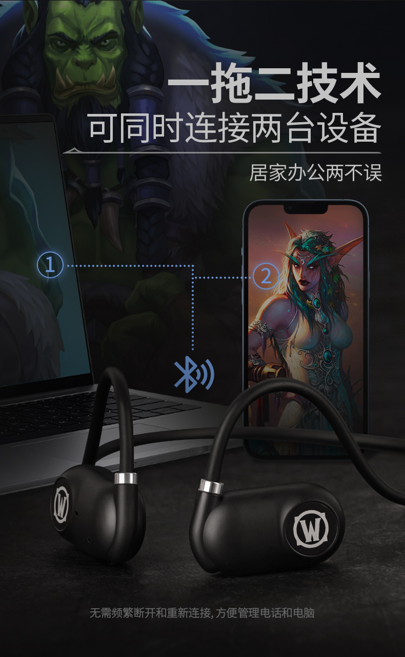 BLIZZARD/暴雪魔兽世界空气传导蓝牙耳机-黑色AS-G01