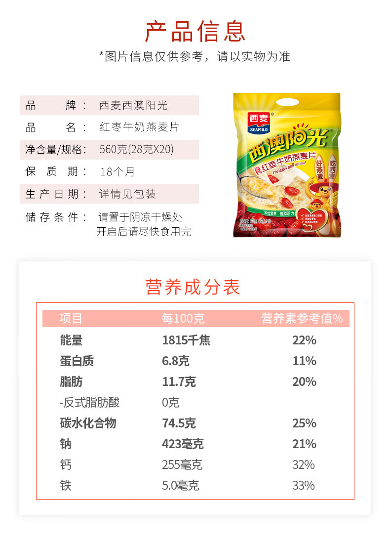 商品名称:SEAMILD/西麦红枣牛奶燕麦片560g