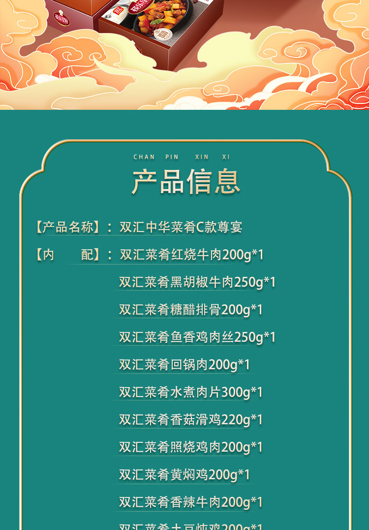 商品名称:【顺丰配送】双汇中华菜肴尊宴预制菜礼盒C款3525g