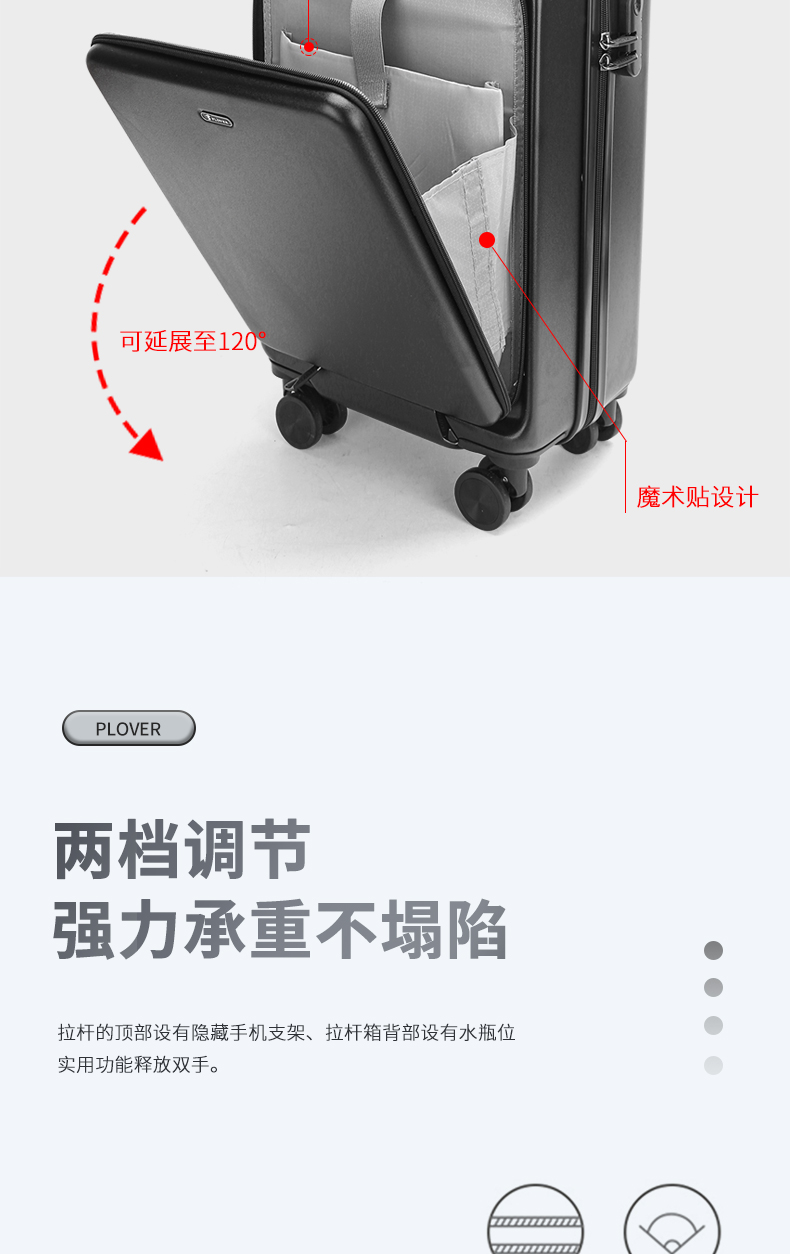 商品名称:PLOVER/啄木鸟20寸前开盖款拉杆箱GD2715-20A