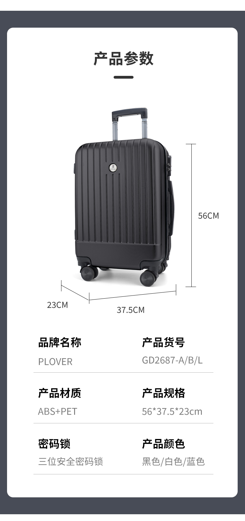 商品名称:PLOVER/啄木鸟20寸拉链款拉杆箱