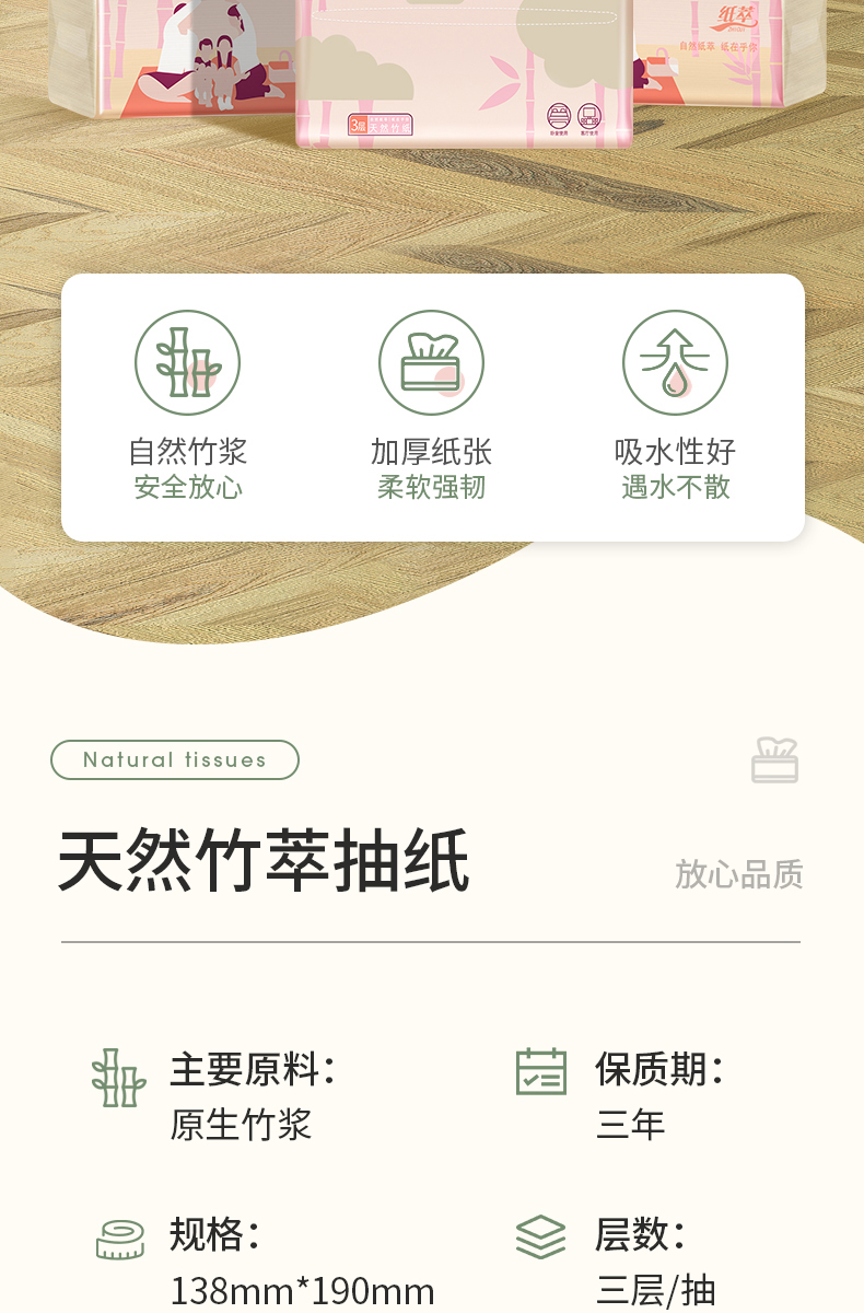 商品名称:ZHICUI/纸萃抽纸3层100抽