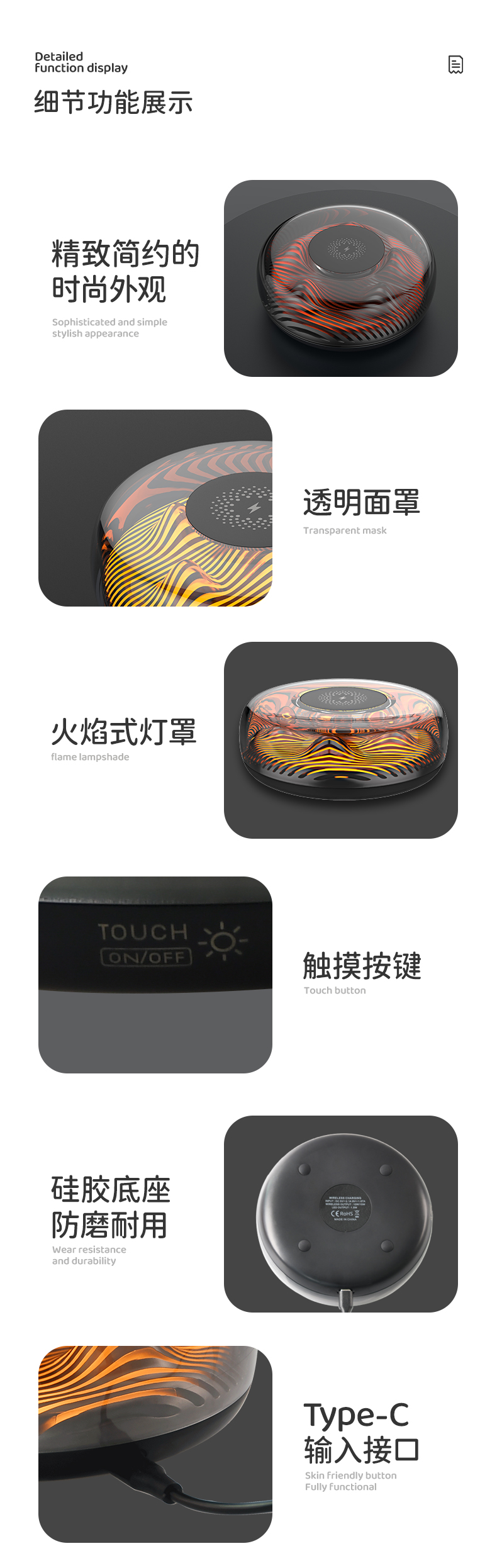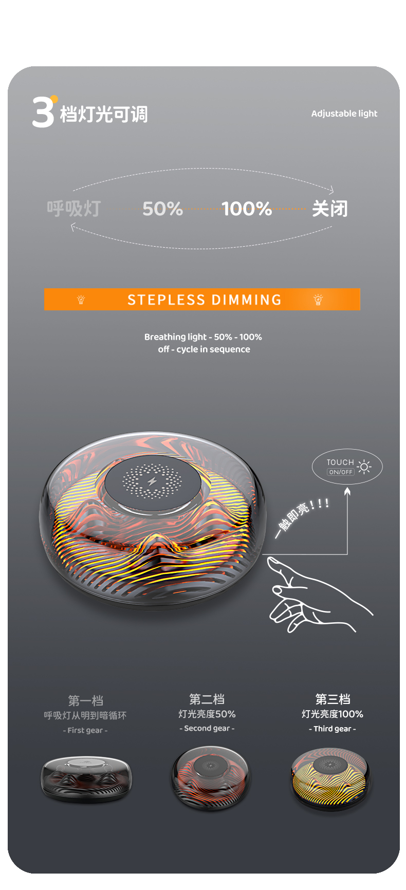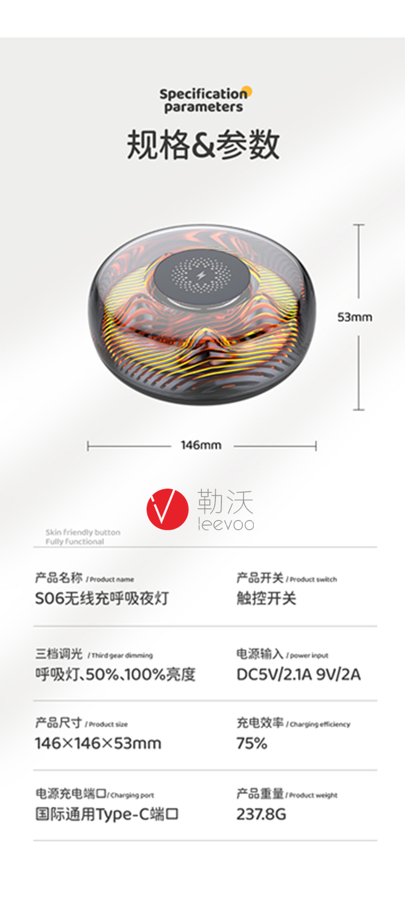 商品名称:勒沃无线充呼吸夜灯LV-S06