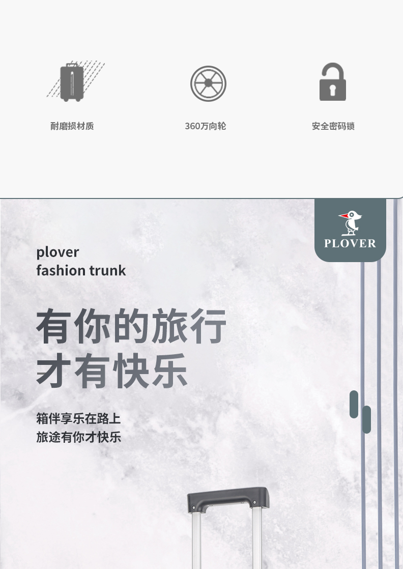 商品名称:PLOVER/啄木鸟20寸拉链款拉杆箱