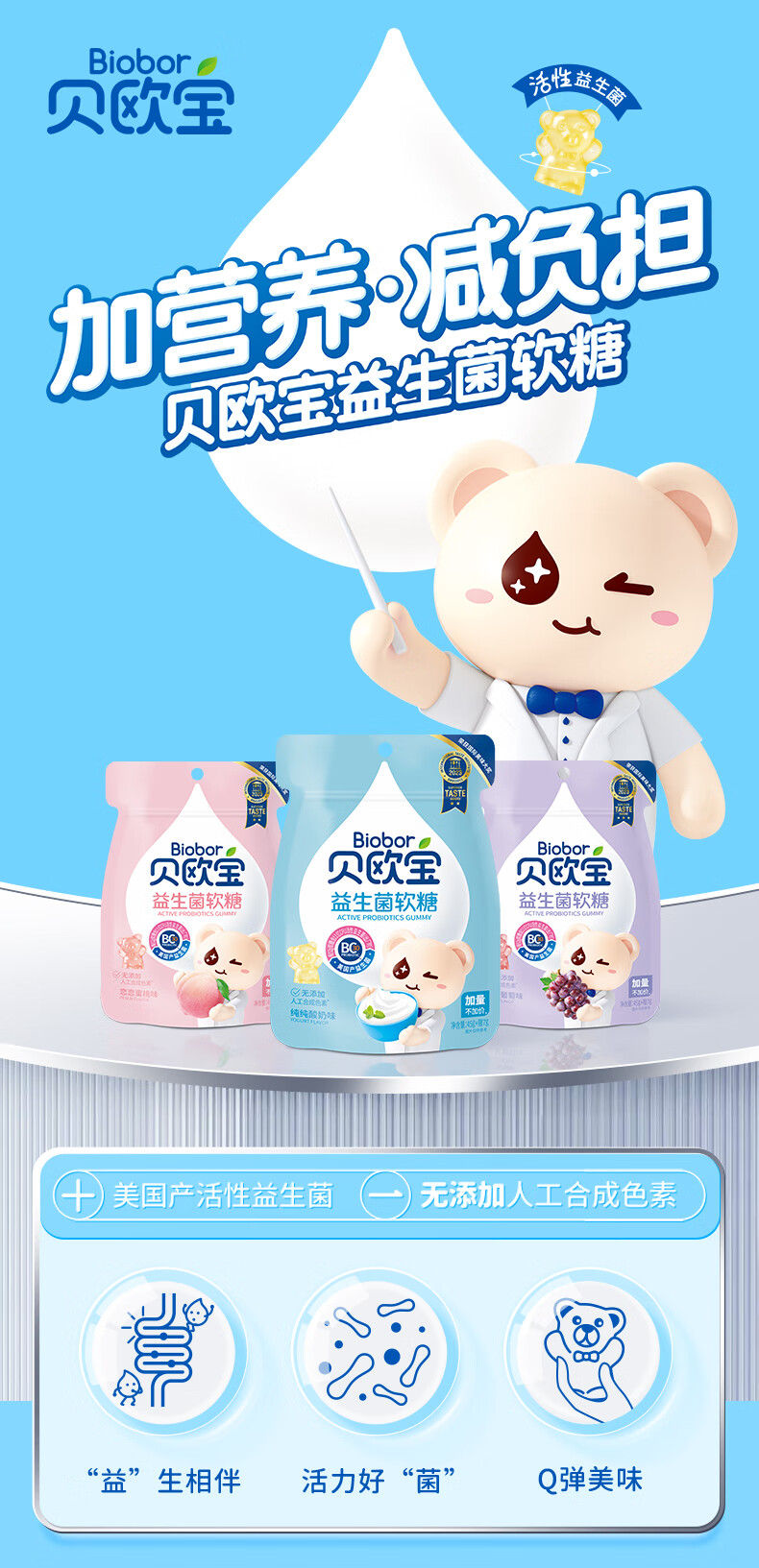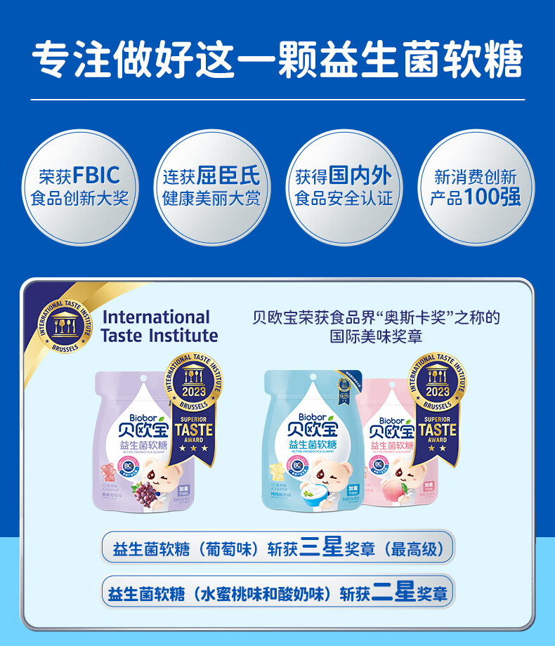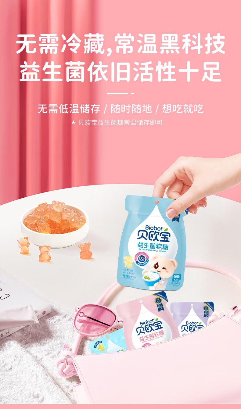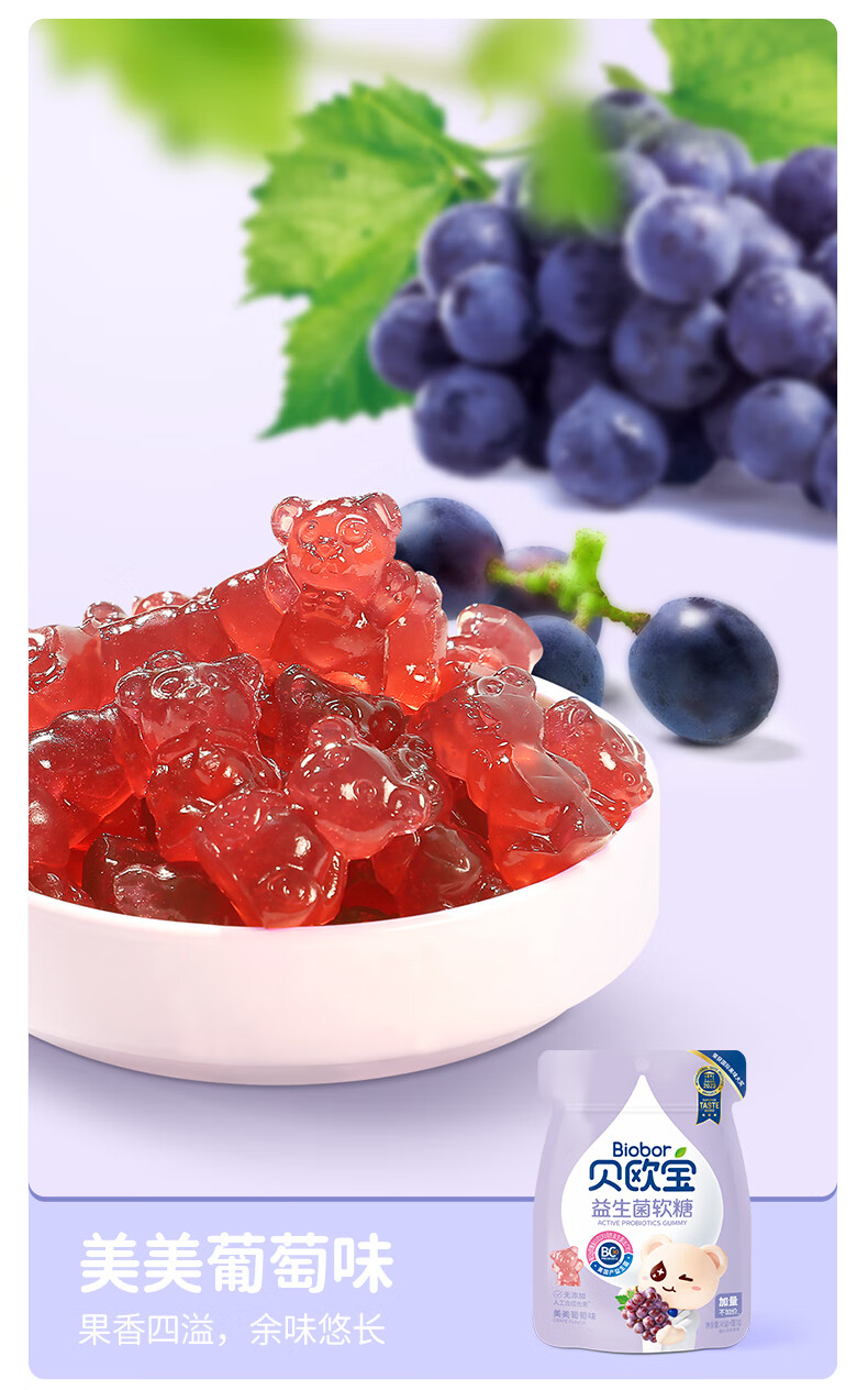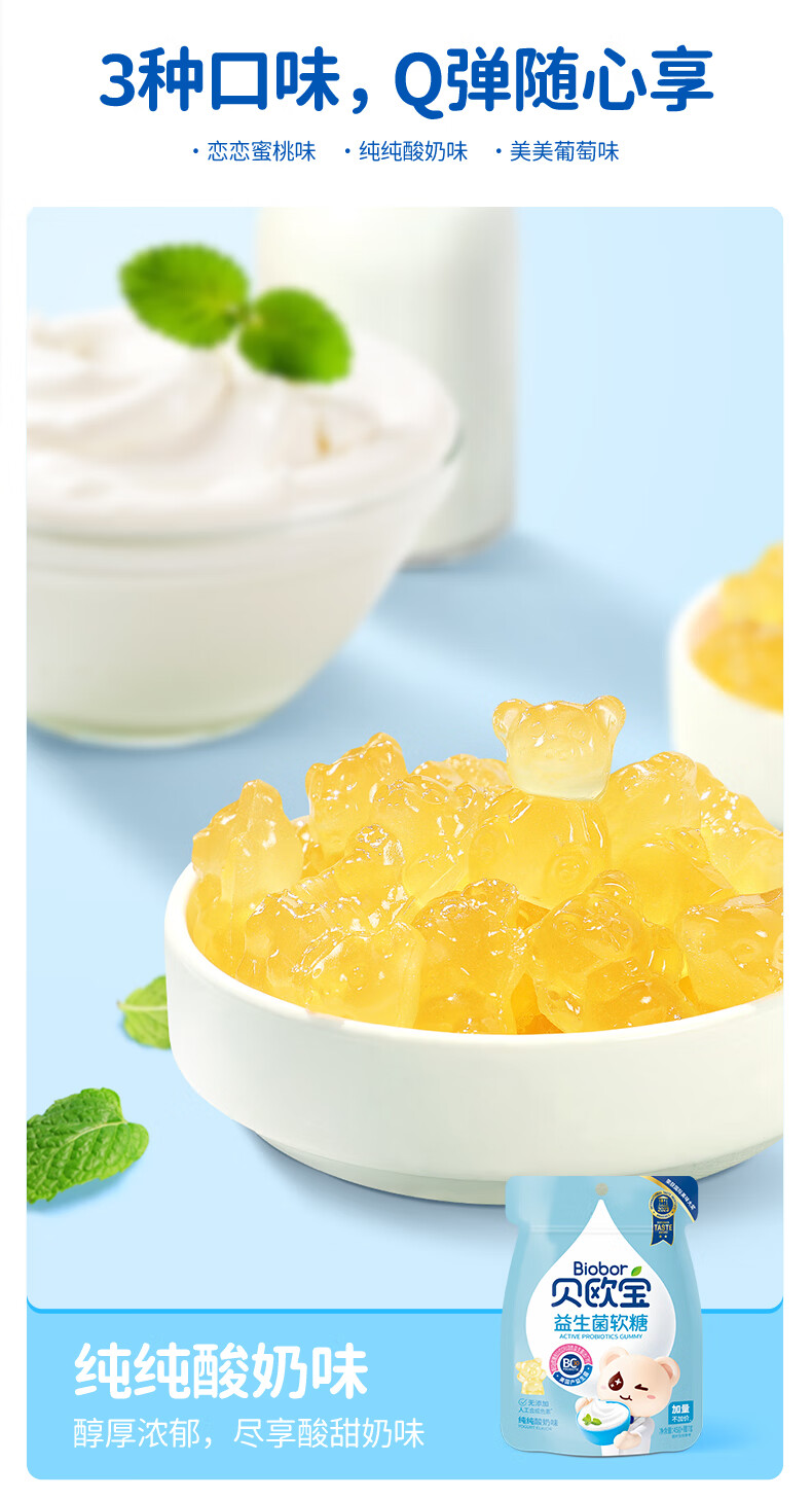 商品名称:Biobor/贝欧宝益生菌软糖混合口味组合52g*3袋