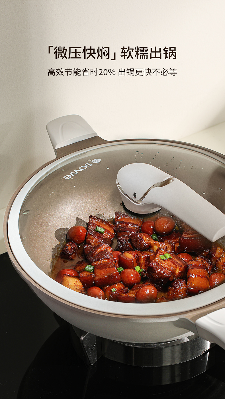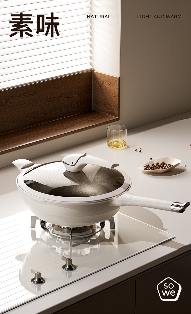 SOWE/素味S鲸鱼系列带盖微压炒锅-灰白色