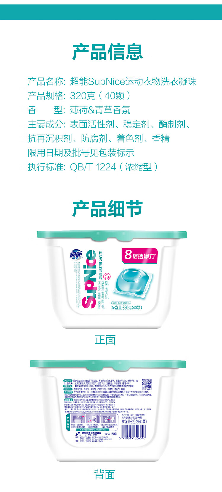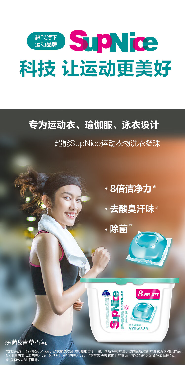 商品名称:超能supnice运动衣物洗衣凝珠320g 11002020111