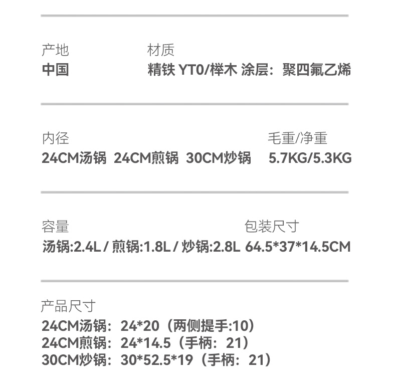 商品名称:STONE/司顿精铁锅具三件套组合STH2210ST