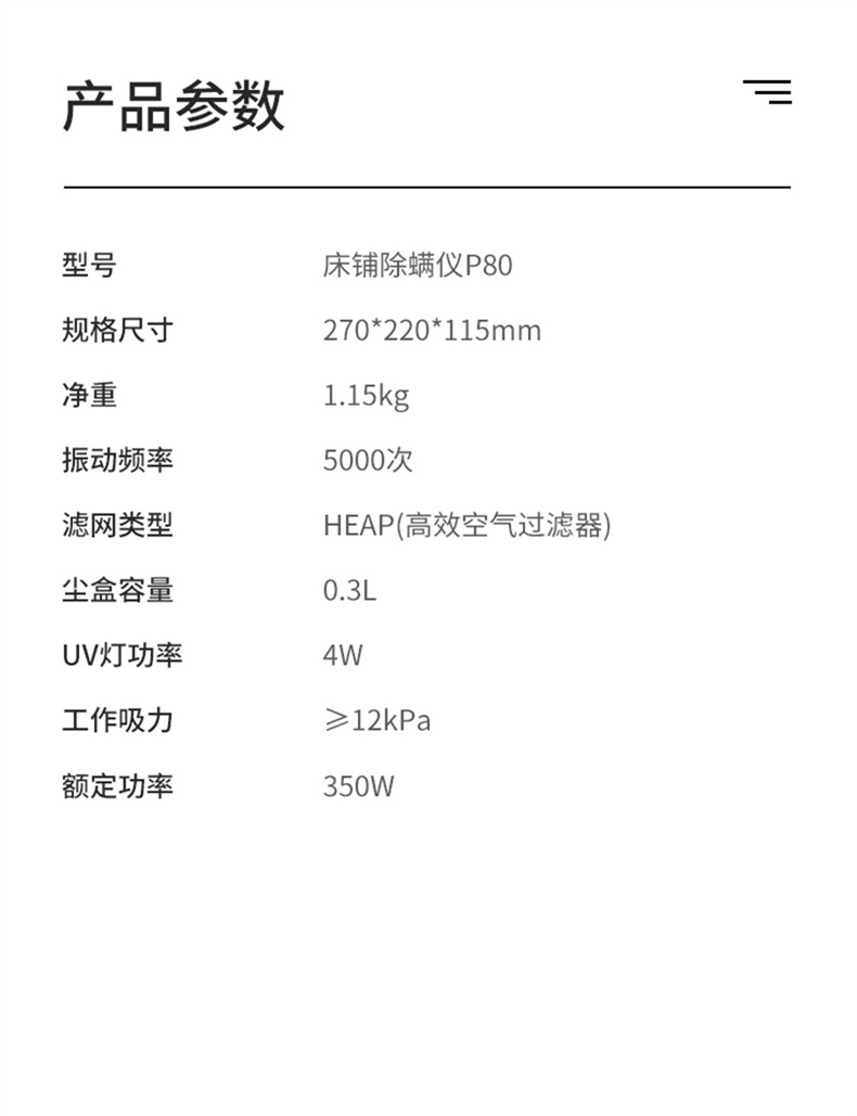 商品名称:pooda/普沃达床铺除螨仪P80