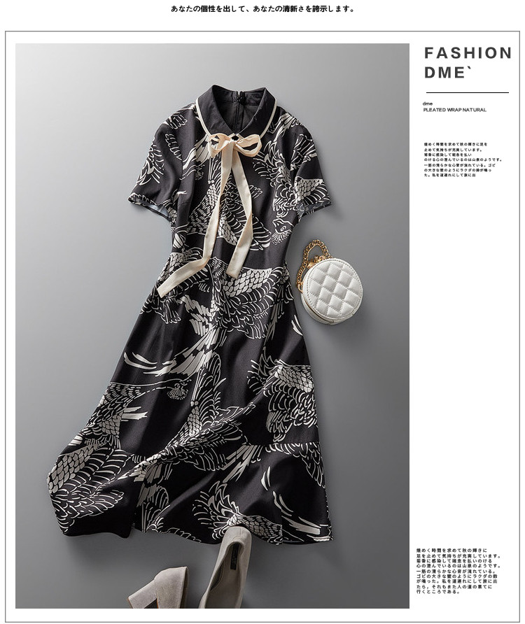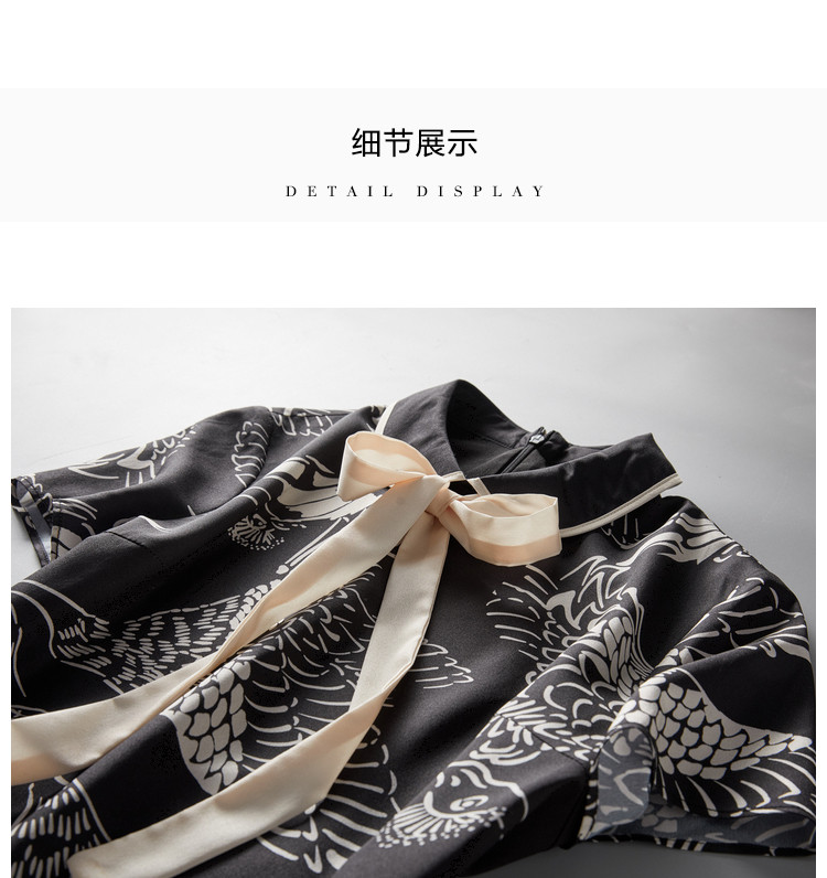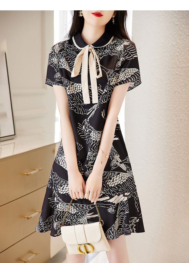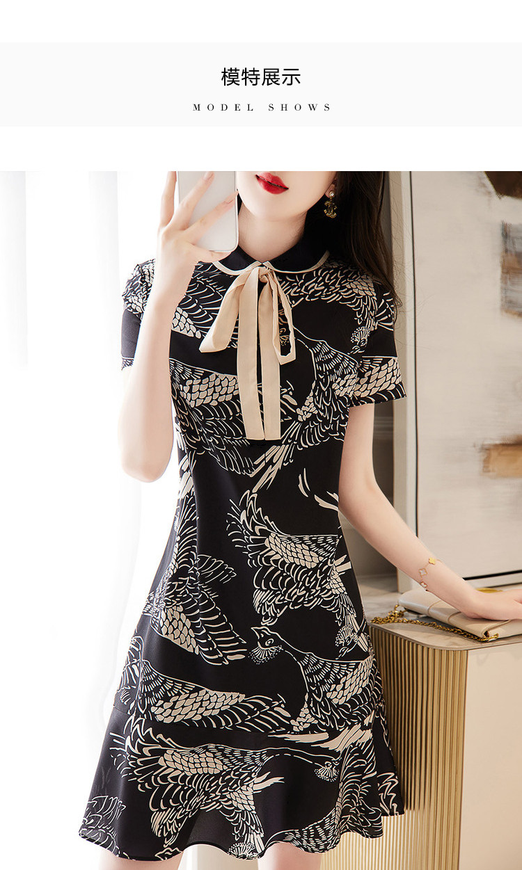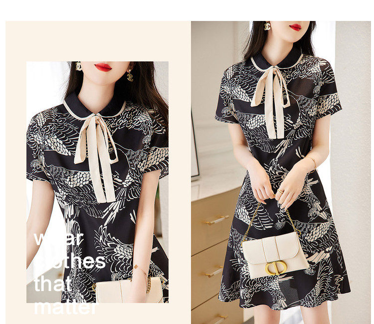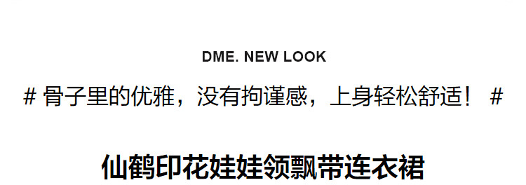 商品名称:【仙鹤印花】夏娃娃领飘带宽松连衣裙女夏 890241