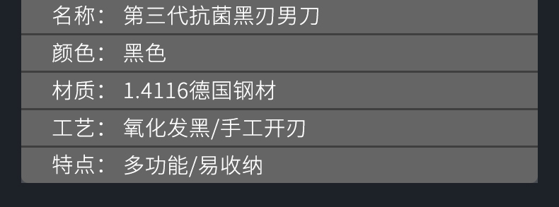 商品名称:OOU!第三代抗菌黑刃男刀-黑色UC4156