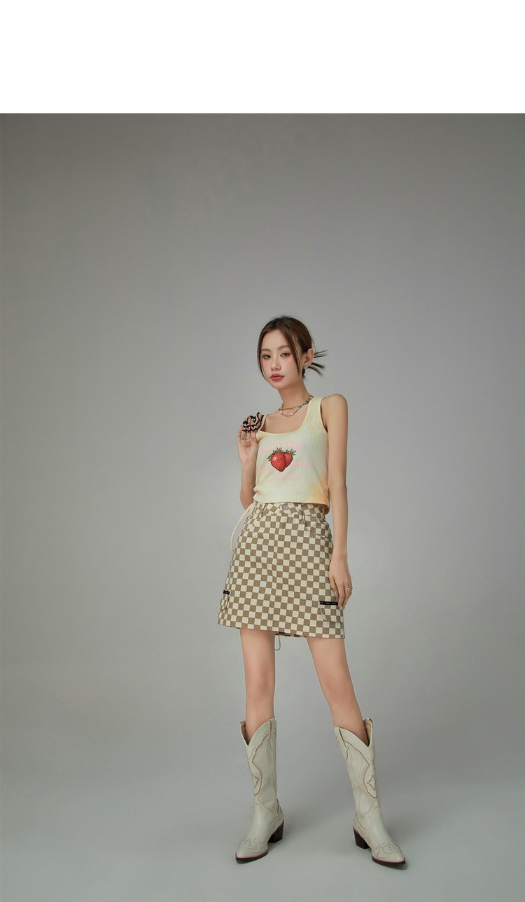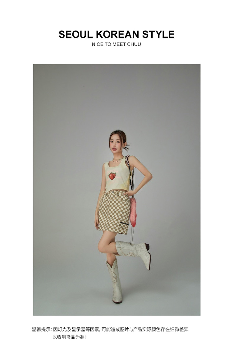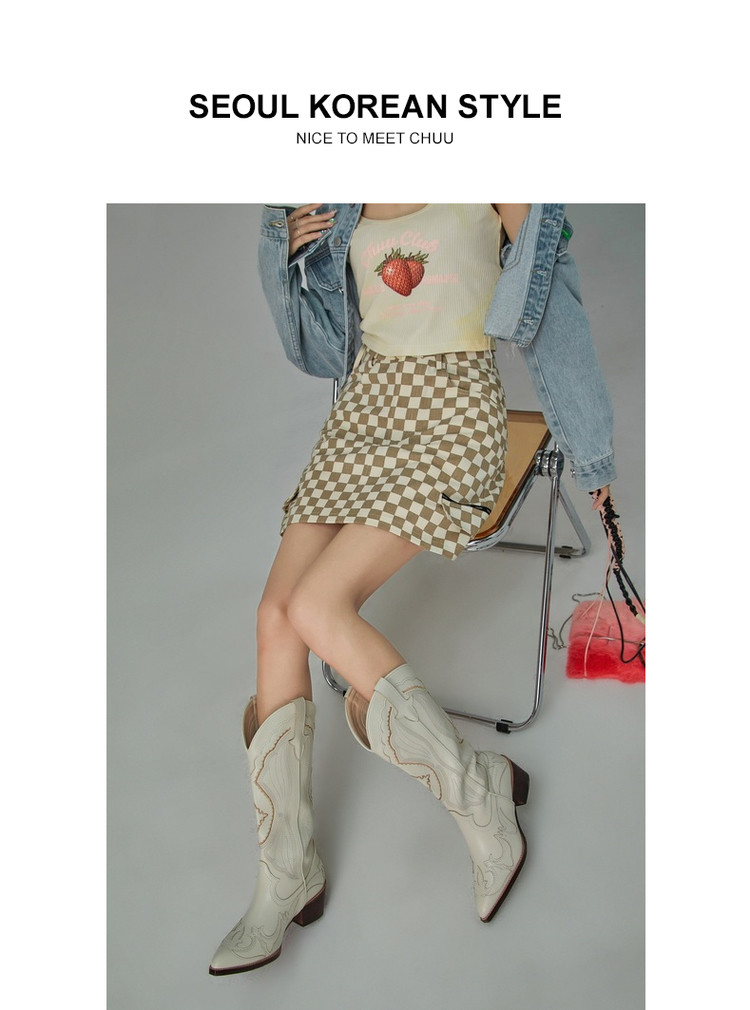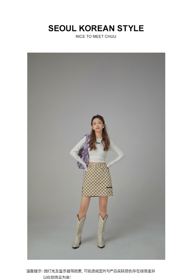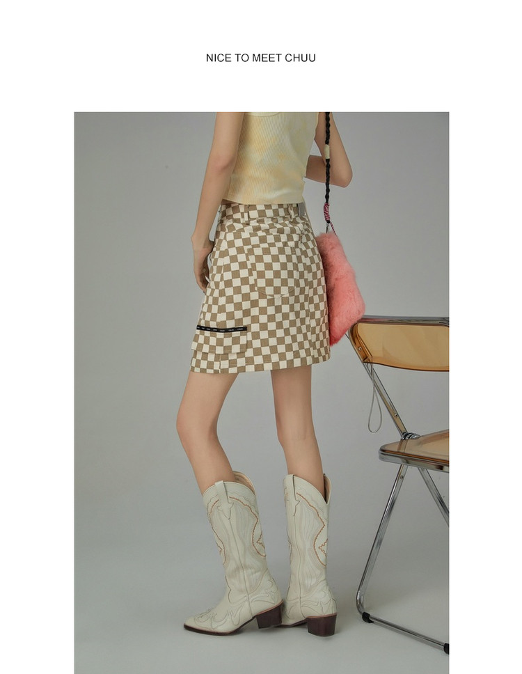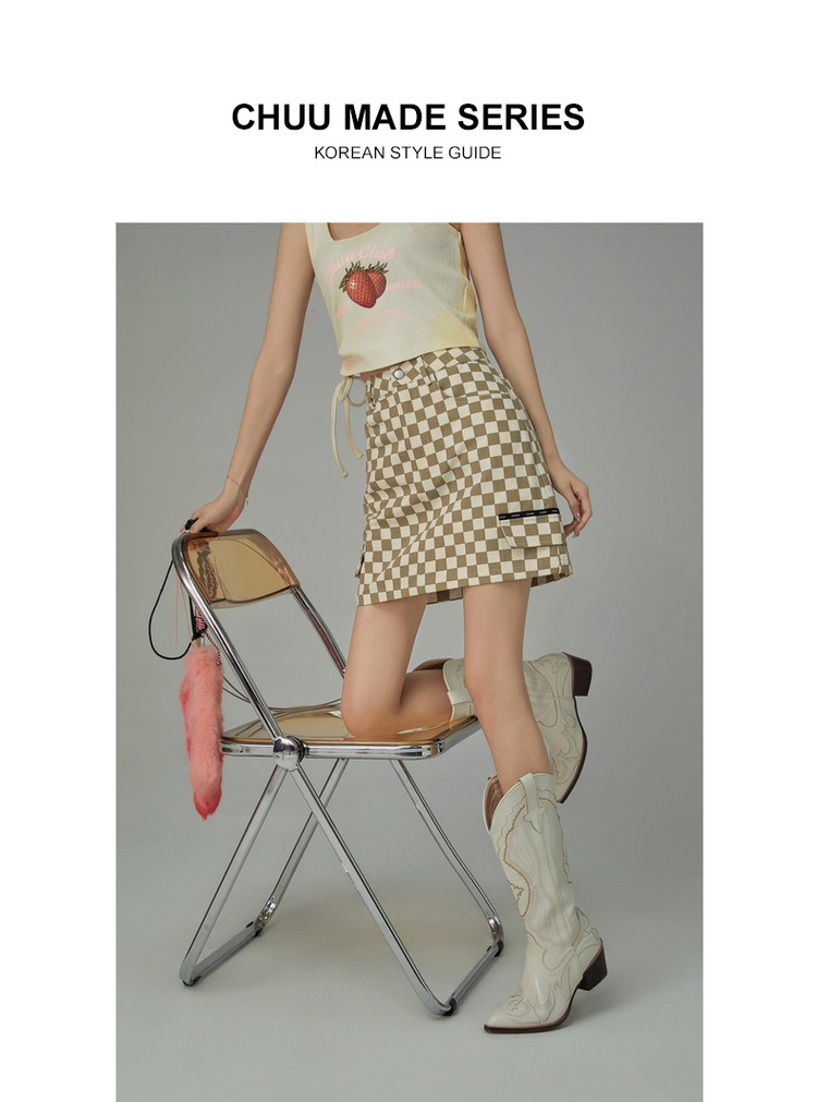 CHUU高腰格纹半身裙女春夏秋洋气百搭减龄短裙子 328147