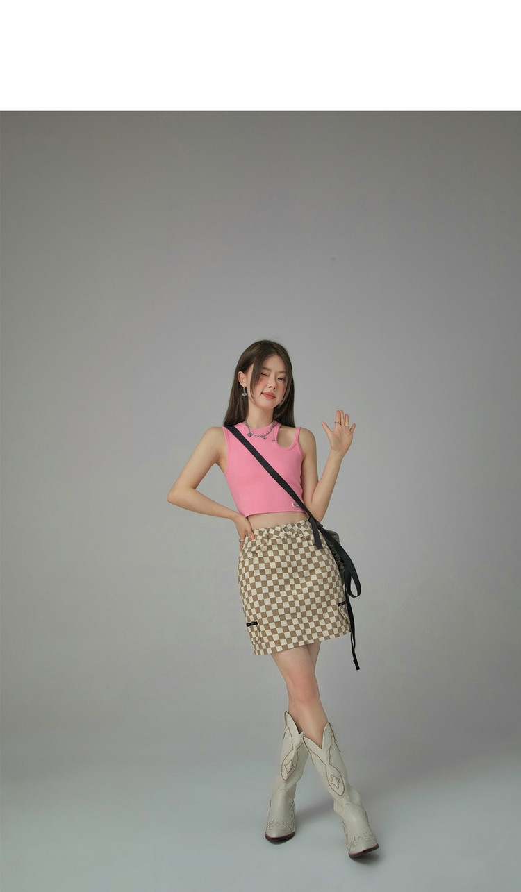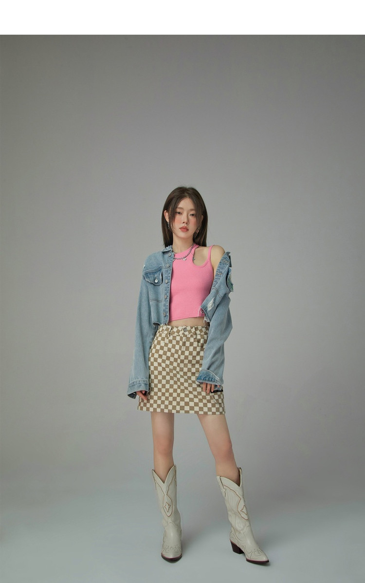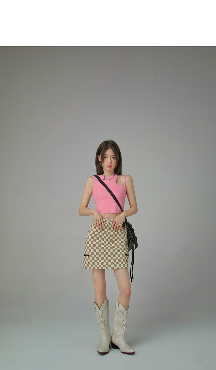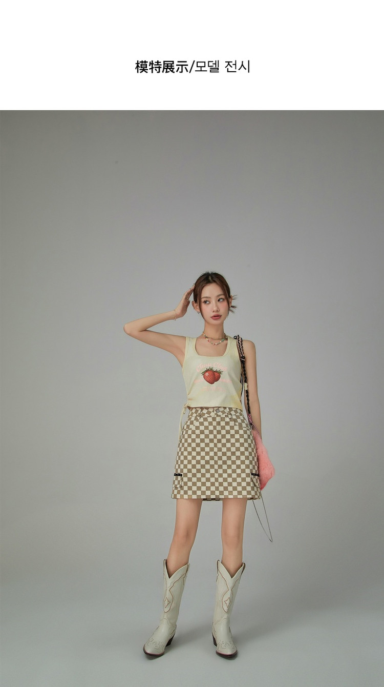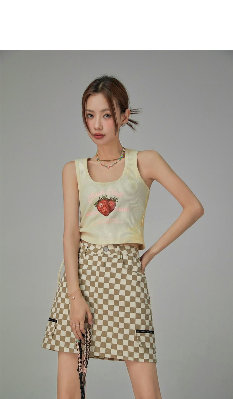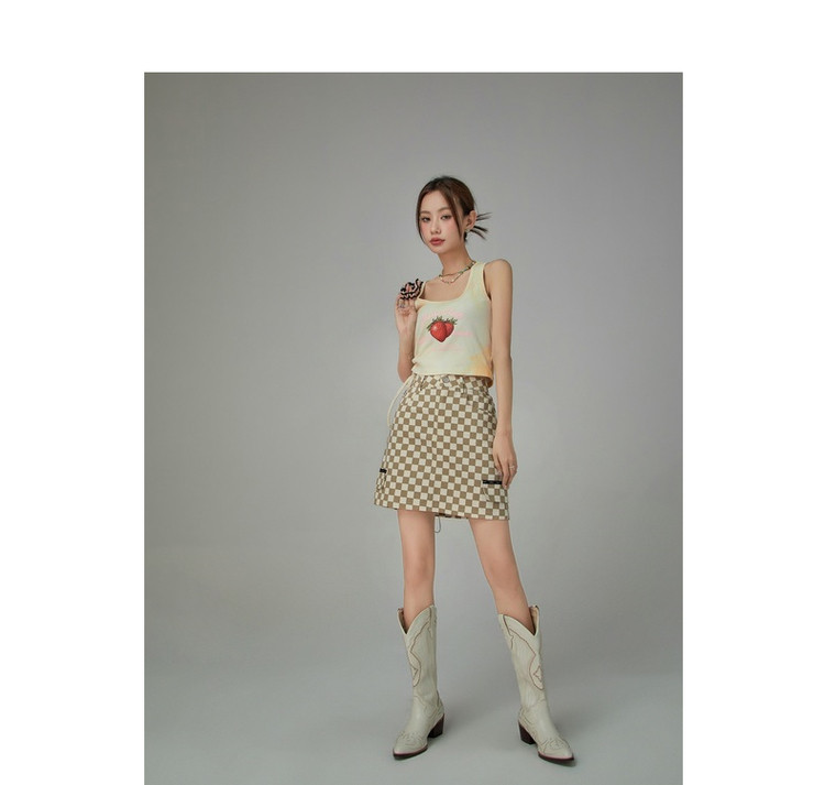 CHUU高腰格纹半身裙女春夏秋洋气百搭减龄短裙子 328147