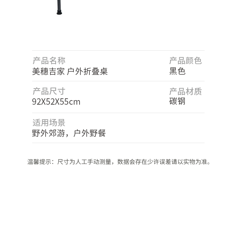 商品名称:美穗吉家户外折叠桌大号-黑色MIHH-2408013