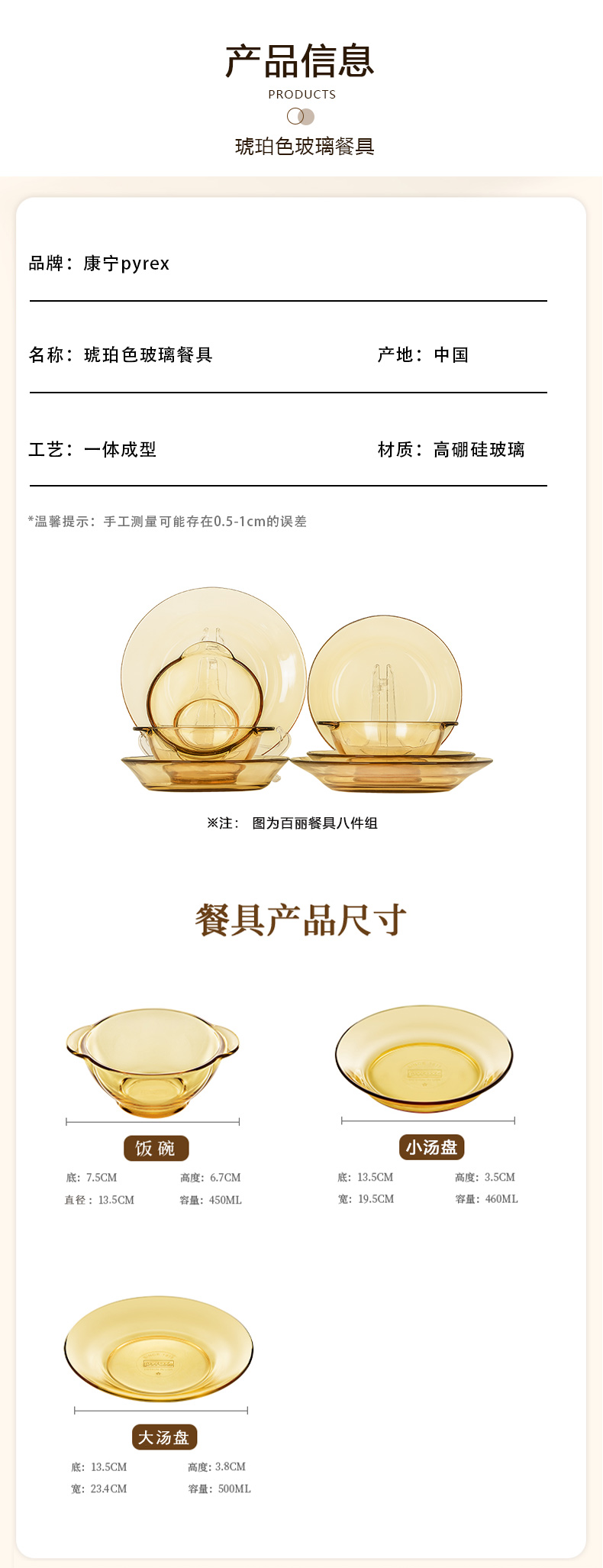商品名称:PYREX/康宁百丽餐具Shiny晶耀系列玻璃餐具八件套