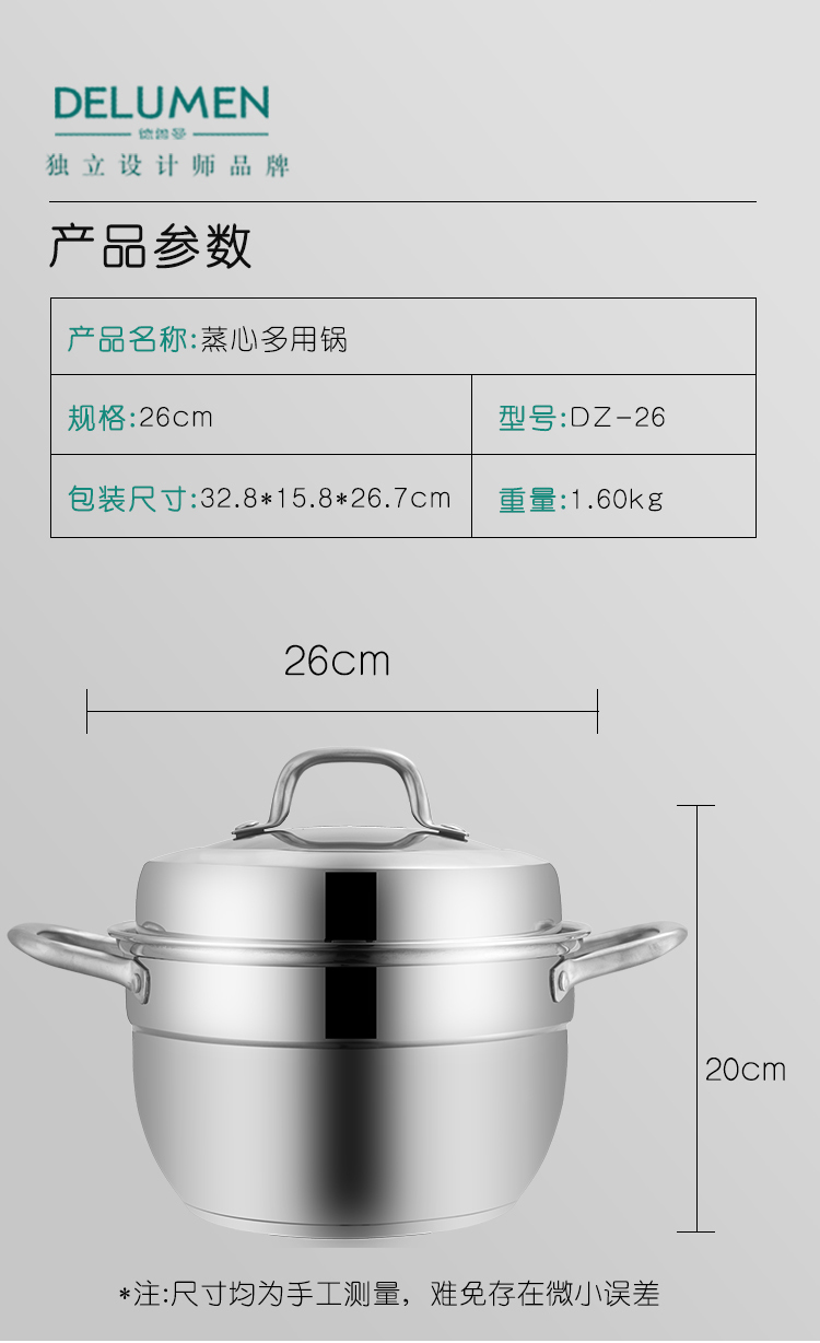 商品名称:DELUMEN/德鲁曼26cm蒸心多用蒸锅DZ-26
