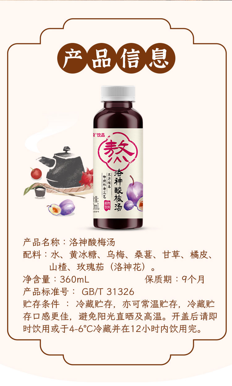 商品名称:乐源熬洛神酸梅汤植物饮料360ml*6瓶