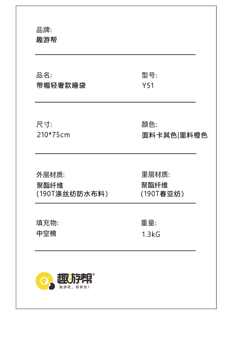 商品名称:趣游帮户外带帽轻奢款睡袋Y51